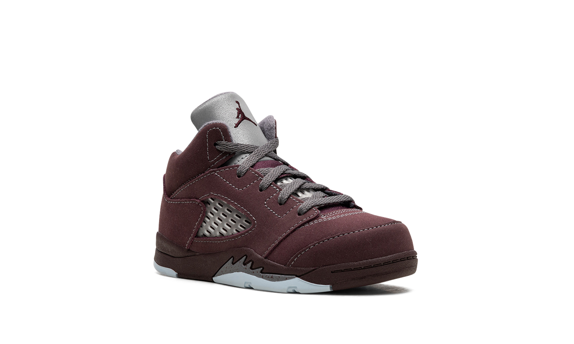 The Air Jordan 5 Retro SE TD "Burgundy" is toddler sizing of the classic colorway that originally released in 2006. Debuted as part of Jordan Brand's “LSâ€?or “lifestyleâ€?collection. the Jordan 5 “Burgundyâ€?was one of the model's first non-original colorways. and one of its most popular releases of the 2000s. The modern edition is nearly identical to the original 2006 release. Deep Burgundy suede appears on the shoe's upper. Translucent netting is found on the mid-panel and on the tongue. A Deep Burgundy Jumpman appears on the silver reflective tongue and a silver Jumpman is embroidered on the heel. Light Graphite shark tooth detailing is found on the burgundy midsole. Release date: September 9. 2023