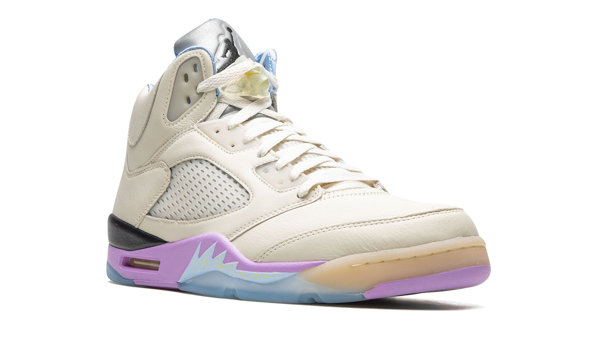 The DJ Khaled x Air Jordan 5 “We the Best - Sailâ€?is one of several popular colorways included in the special collaboration by the famous hip-hop producer on Michael Jordan's fifth signature shoe. DJ Khaled's collection of pastel-colored Jordan 5s is inspired by Miami and warm weather. as the shoe's colorful accents undoubtedly call to mind both the Florida city and its climate. The shoe is complete with a Sail-colored leather construction with translucent netting on the tongue and mid-panel. Yellow “We the Bestâ€?branding inspired by Khaled's signature catchphrase is embroidered on the heel of the left shoe while the Jordan 5's original “Nike Airâ€?logo is embroidered on the heel of the right shoe. The words “Keepâ€?and “Goingâ€?are found on the underside of the blue quilted tongue tag. Classic Jumpman logo detailing appears on the Metallic Silver reflective tongue. Release date: November 28. 2022