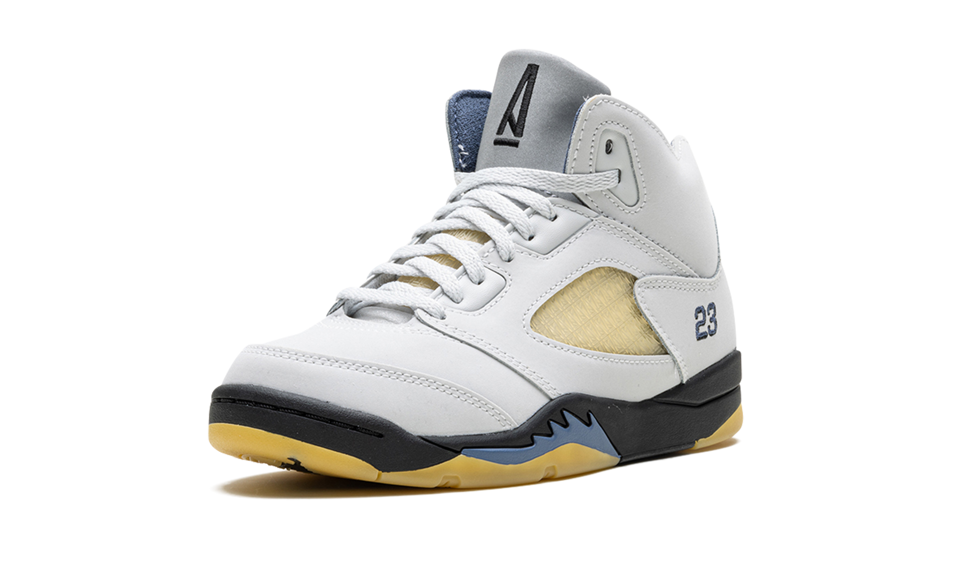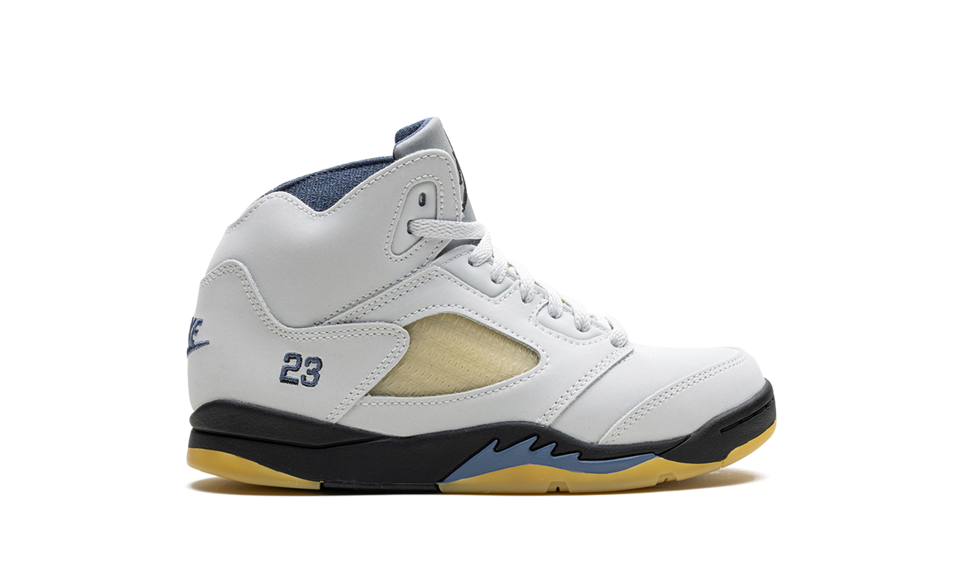 The A Ma Maniére x Air Jordan 5 SP PS “Dawnâ€?is the preschool sizing of the fifth Air Jordan from the collaboration by James Whitner's boutique. Since the late 2010s. A Ma Maniére has been one of the most successful collaborators in the sneaker space. having worked with Jordan Brand on several now-classic sneakers. For this child-sized Jordan 5. the upper features a white leather construction with pre-aged netting on the tongue and mid-panel designed in a pattern of A Ma Maniére's “Aâ€?logo. Jordan's â€?3â€?jersey number is embroidered on the lateral side of the heel. Yellow-tinted. semi-translucent rubber on the outsole continues the pre-aged look underneath the black midsole with blue shark tooth detailing. Release date: November 17. 2023