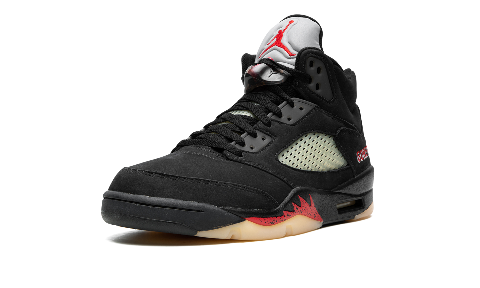 The Women's Air Jordan 5 “Gore-Texâ€?is a women's-exclusive colorway of Michael Jordan's fifth signature shoe that updates its timeless design with water-resistant properties. Inspired by the Jordan 5's “Black Metallicâ€?colorway. the “Gore-Texâ€?features the same black. white. and red color scheme as the former. but updates its build with water-resistant Gore-Tex lining. The shoe's black synthetic nubuck upper is resistant against the elements. Red “Gore-Texâ€?branding is embroidered on the lateral side of the left shoe while â€?3â€?branding is embroidered on the right side of the right shoe. A red Jumpman appears on the reflective tongue. The black midsole features red shark tooth detailing.