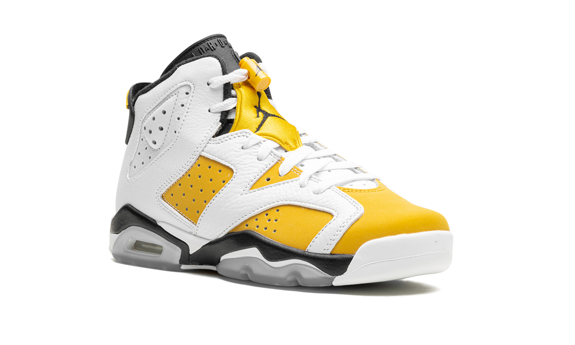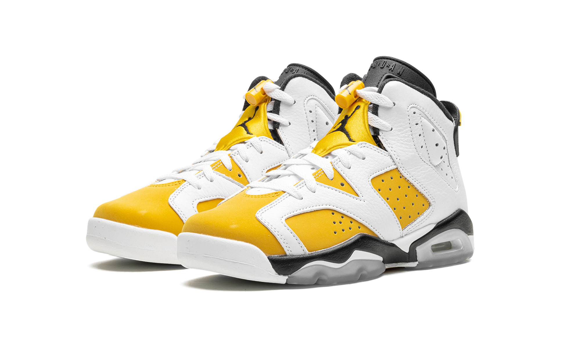 The Air Jordan 6 GS "Yellow Ochre" is the youth sizing of the retro basketball shoe with a white-and-yellow color scheme. Featuring the reconizable color block of the original “Carmineâ€?Air Jordan 6. this “Yellow Ochreâ€?colorway replaces all of the red accents with an earth tone shade of yellow. The yellow hue in question is found on the synthetic nubuck base of the shoe. along with white leather overlays and black detailing throughout. The Jordan 6's signature icy translucent rubber outsole and visible Air unit in the heel complete the design. Release date: January 27. 2024