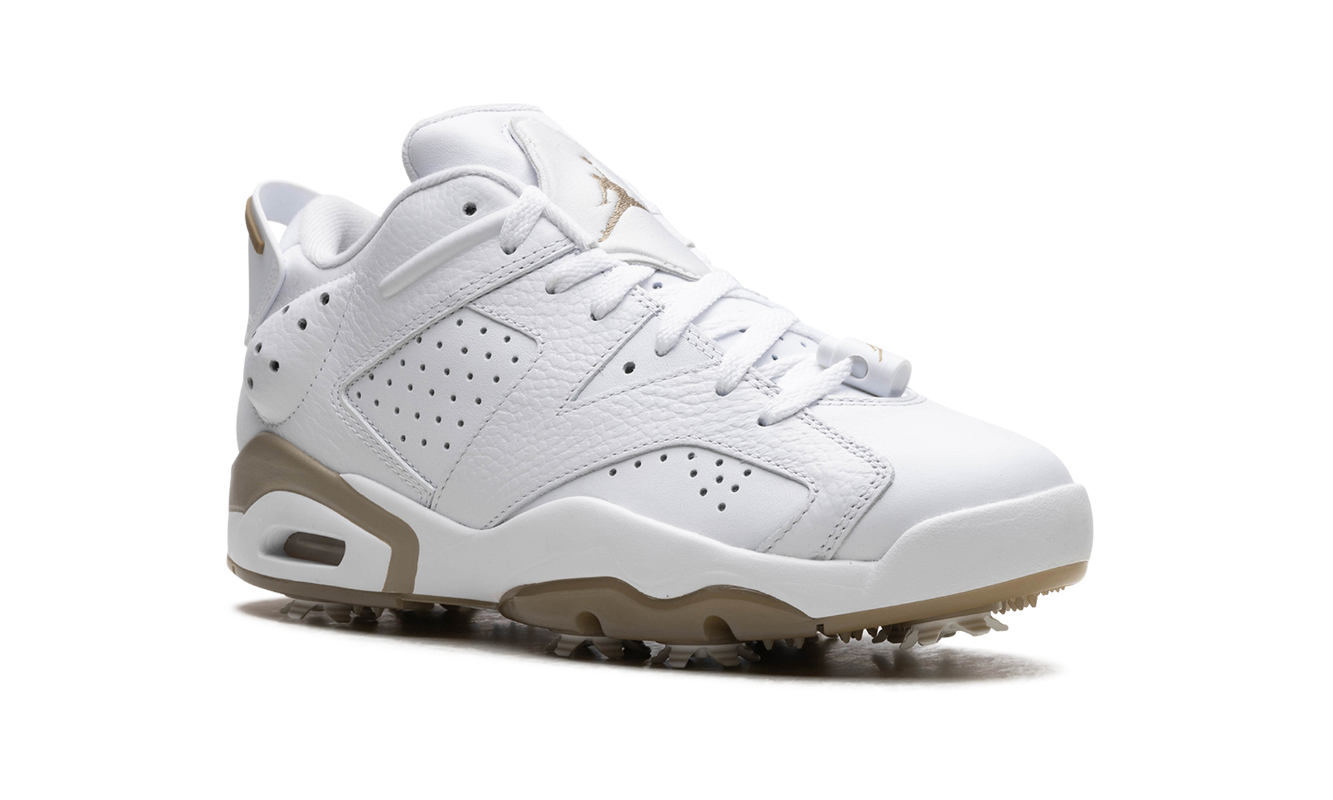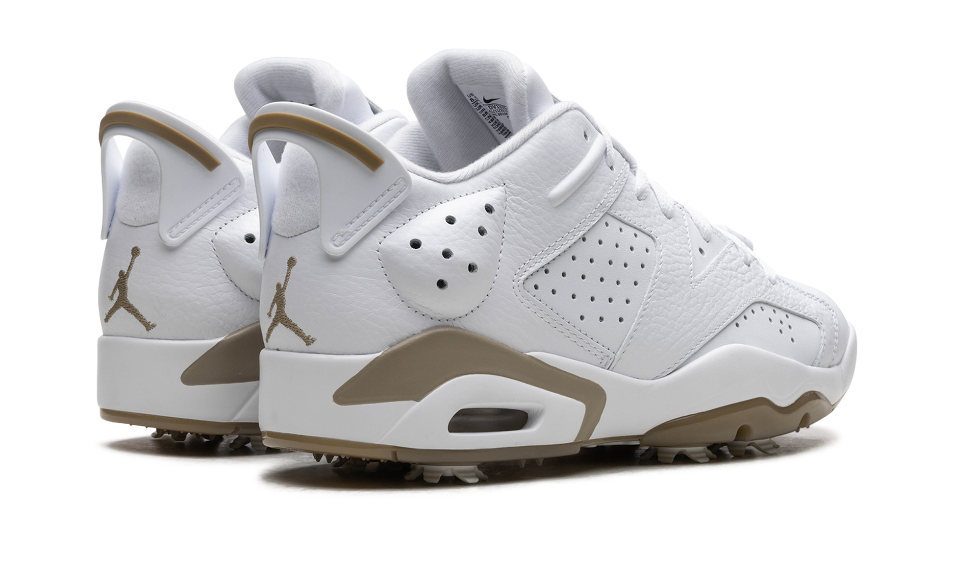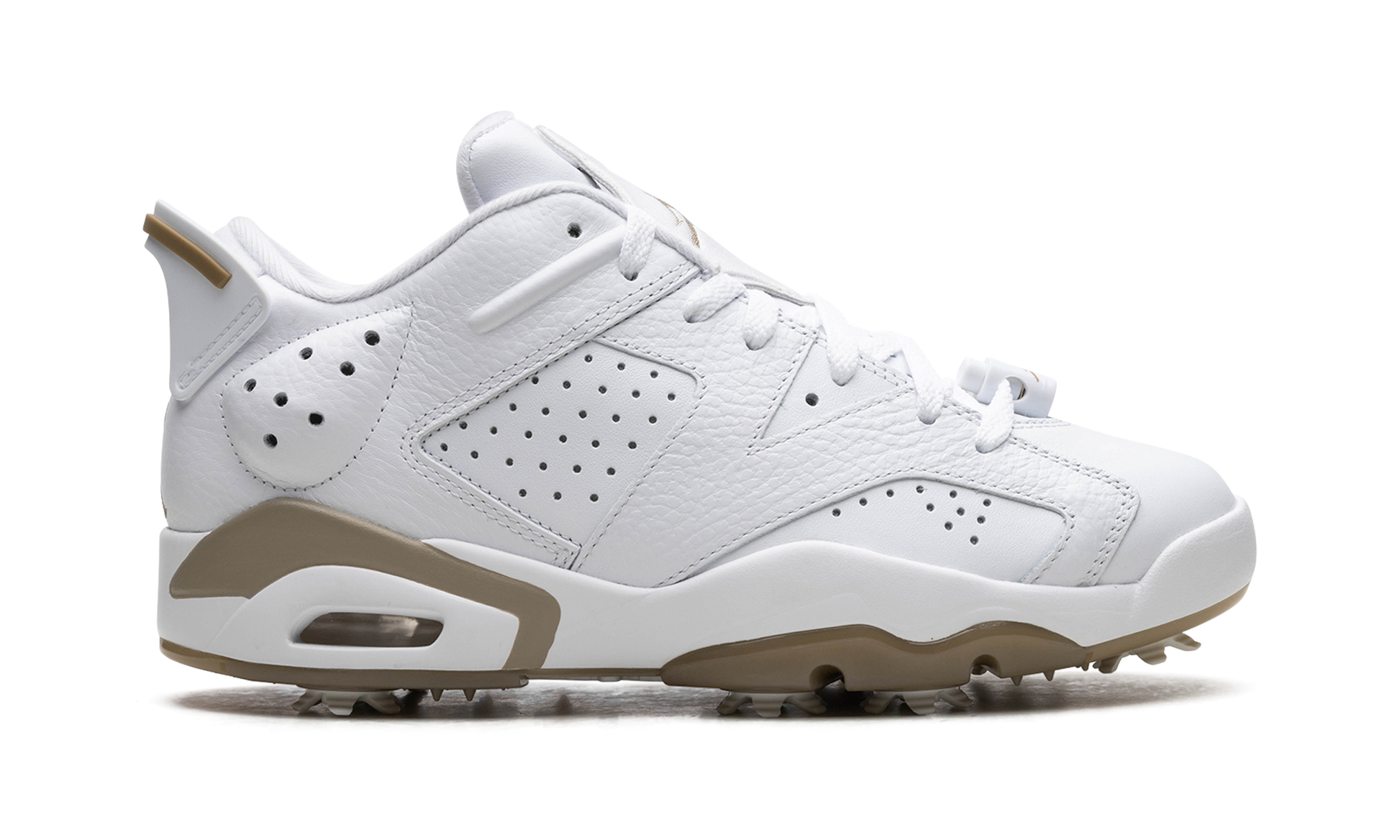 The Air Jordan 6 Low Golf "White/Khaki" is the golf version of the retro basketball shoe in a summer-ready colorway. The Jordan 6 Low Golf is one of multiple Air Jordans that have been redesigned by Jordan Brand for the fairway. Here. the colorway features a white leather construction with perforations on either side. A Khaki Jumpman is embroidered on the tongue and heel. Additional Khaki accenting can be found on the spoiler on the heel and on the midsole walls. Underfoot. the treaded outsole provides traction on a golf course. Release date: July 25. 2023