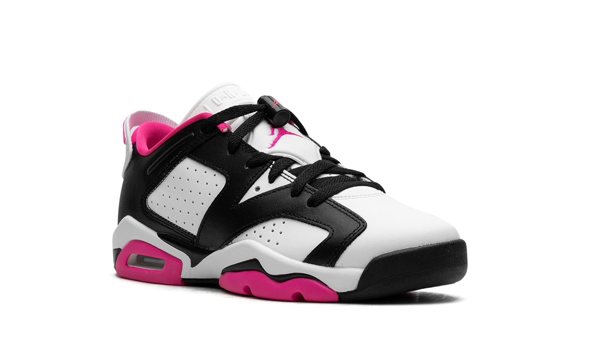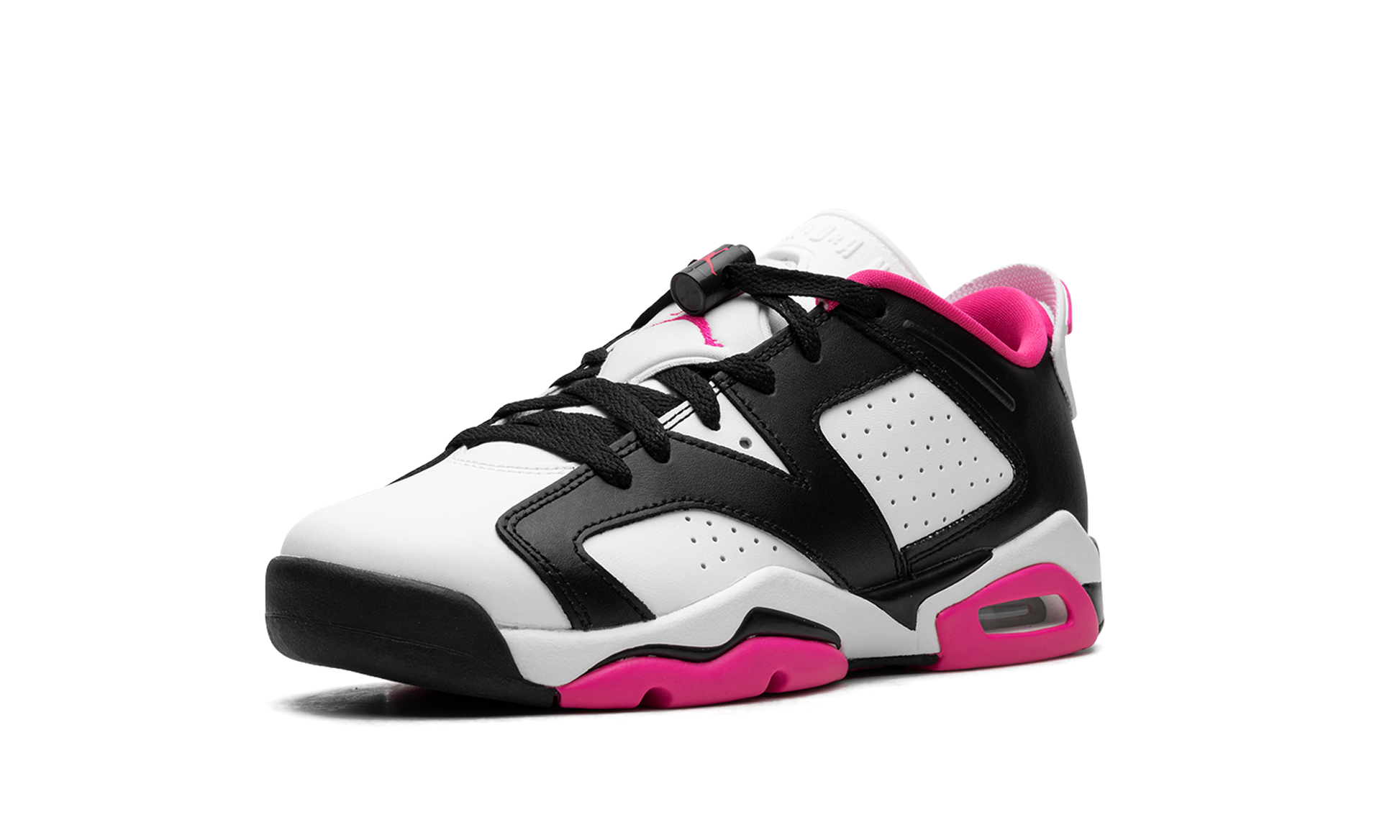 The Air Jordan 6 Low GS "Fierce Pink" is the youth sizing of the low-top retro basketball sneaker in a can't-miss colorway. The Jordan 6 Low “Fierce Pinkâ€?was released exclusively in children's sizes and features a white base contrasted with black leather overlays. Fierce Pink accenting lands on the Jumpman on the tongue. on the inner lining. on the pull tab on the heel. and on the outsole. Underfoot. the shoe is complete with a white rubber midsole that's placed on a black and pink rubber outsole. Release date: July 24. 2023