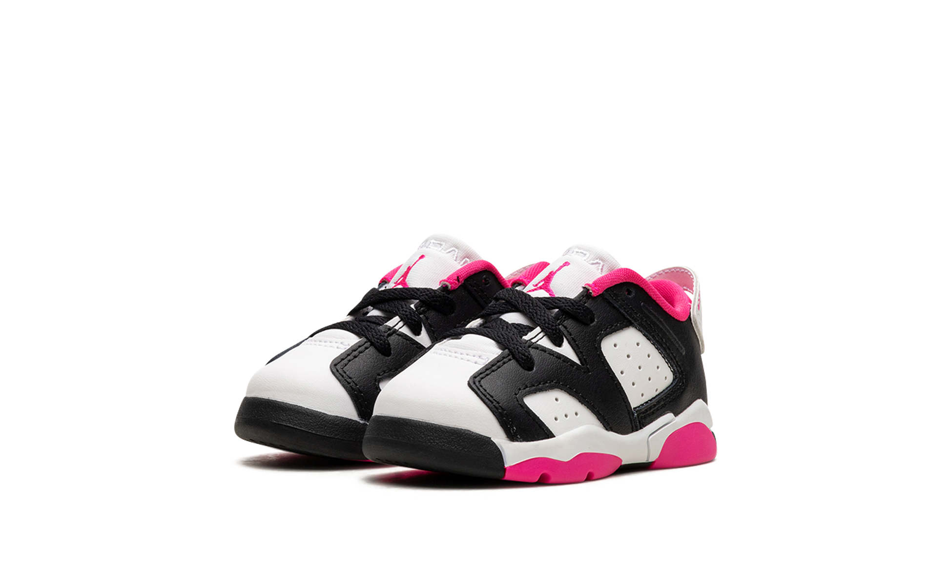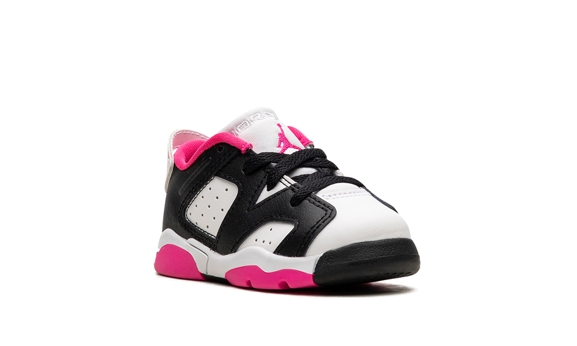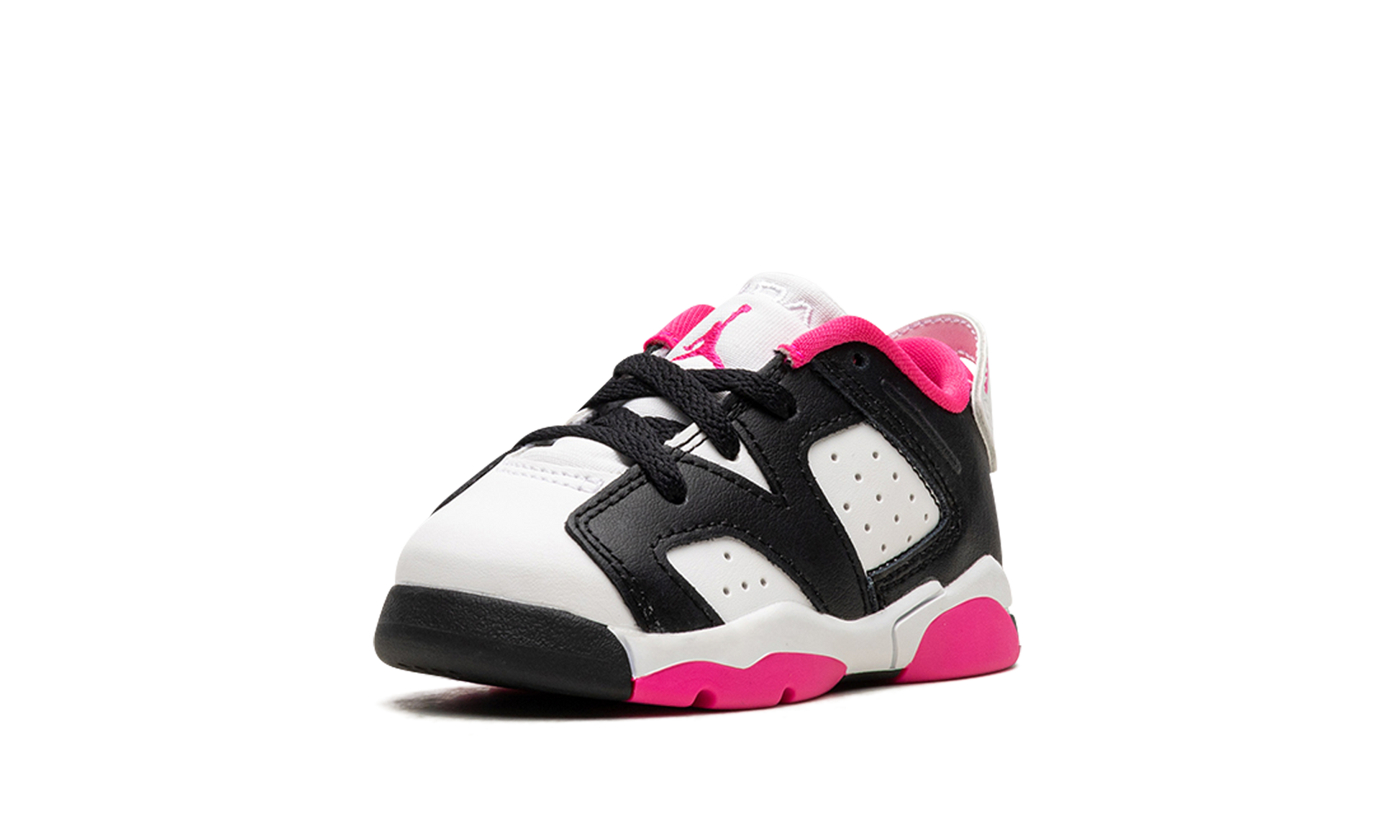 The Air Jordan 6 Low TD "Fierce Pink" is the toddler sizing of the low-top retro basketball shoe in an eye-catching colorway. The Jordan 6 Low “Fierce Pinkâ€?was released exclusively in kid's sizes and features a white base contrasted with black leather overlays. Fierce Pink accenting lands on the Jordan branding on the tongue. on the inner lining. on the pull tab on the heel. and on the outsole. Underfoot. the shoe is complete with a white rubber midsole that's placed on a black rubber outsole. Release date: July 24. 2023