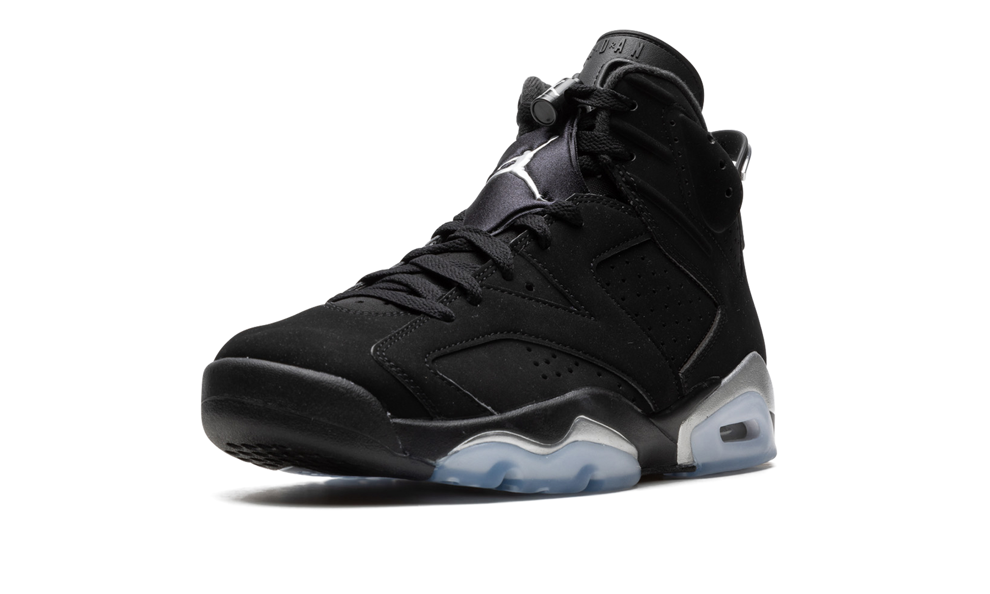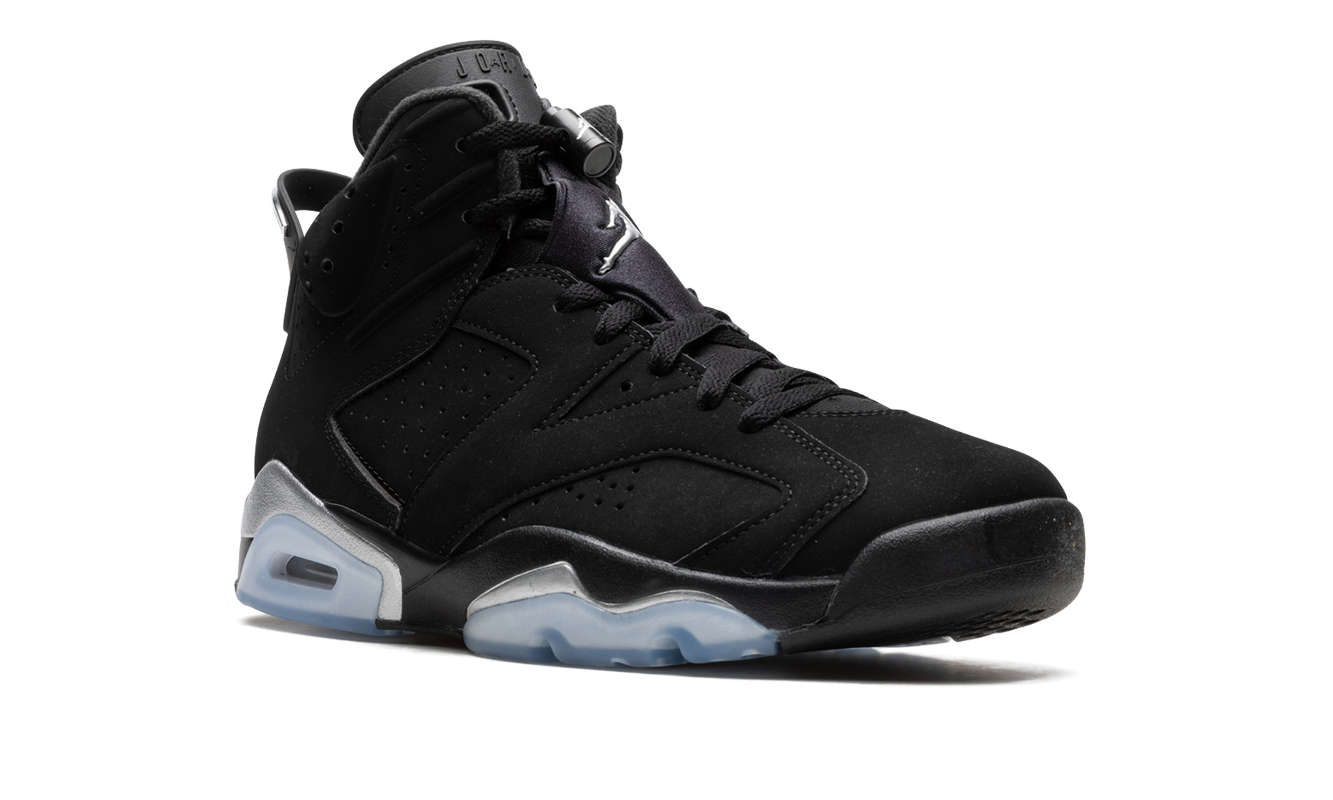 The Air Jordan 6 “Chrome 2022" is the modern reissue of the popular non-original colorway of the retro basketball shoe in mid-top form. Originally released back in 2002 on the Jordan 6 Low. the “Chromeâ€?was brought back on the model's original mid-top silhouette in November 2022. The modern “Chromeâ€?color block is identical to the original version from back in the day. The shoe features a black synthetic nubuck upper with contrasting Metallic Silver or “Chromeâ€?accents on the mudguard above the visible Air cushioning unit in the heel and on the forefoot. Additional chrome-colored detailing includes a Metallic Silver Jumpman on the tongue. and â€?3â€?branding beneath the black embroidered Jumpman on the heel. A small silver Jumpman appears on the lace toggle. Release date: November 12. 2022