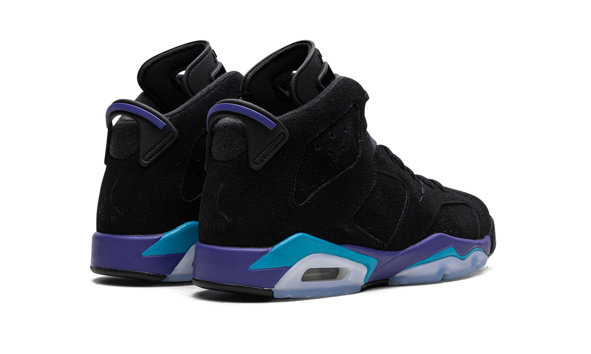 The Air Jordan 6 GS "Aqua" is the youth sizing of Michael Jordan's sixth signature shoe inspired by an iconic Air Jordan colorway. The shoe in question is the Air Jordan 8 “Aqua.â€?an original colorway of the model that was worn by Jordan during the 1993 NBA All-Star Game. Jordan Brand transfers the Jordan 8 “Aqua'sâ€?color scheme onto the Jordan 6 by featuring the shoe's Bright Concord and Aquatone accents on the midsole. As for the rest of the shoe. the colorway features a black synthetic nubuck construction with tonal overlays. A Bright Concord Jumpman is embroidered on the tongue while a teal Jumpman is seen on the purple lace toggle. On the back of the shoe. a black spoiler with Aqua accents completes the design. Release date: October 7. 2023