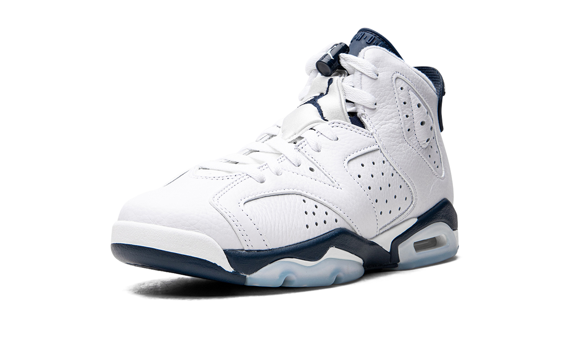 The Air Jordan 6 GS “Midnight Navy 2022â€?is the youth sizing of a colorway of Michael Jordan's sixth signature shoe that originally debuted in 2000 and was brought back in early 2022. The “Midnight Navyâ€?was once part of Jordan Brand's “Retro+â€?collection. a series of non-original colorways from the late '90s and early 2000s that put a new “lifestyleâ€?spin on classic Air Jordan models. Interestingly. the “Midnight Navyâ€?colorway of the vintage basketball shoe is styled similarly to the model's original “White Infrared.â€?“Sport Blue.â€?and “Maroonâ€?looks. The entire upper appears in white tumbled leather. A Midnight Navy Jumpman is embroidered onto the white nylon lace overlay. Additional Midnight Navy accenting comes into play on the lace toggle with white Jumpman branding. on the tongue. and on the spoiler on the heel. A navy blue Jumpman is stitched onto the heel above white “Airâ€?branding. Release date: May 11. 2022
