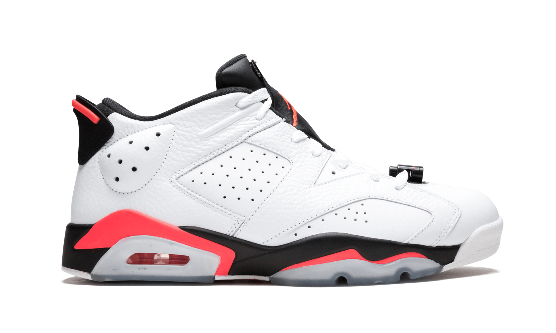 A re-imagined take on the iconic 'White/Infrared' Air Jordan 6. this low-top version features a similar look with a dropped top and more black on the midsole. This summer 2015 release will surely go on to be a classic colorway of the Air Jordan 6 Low.