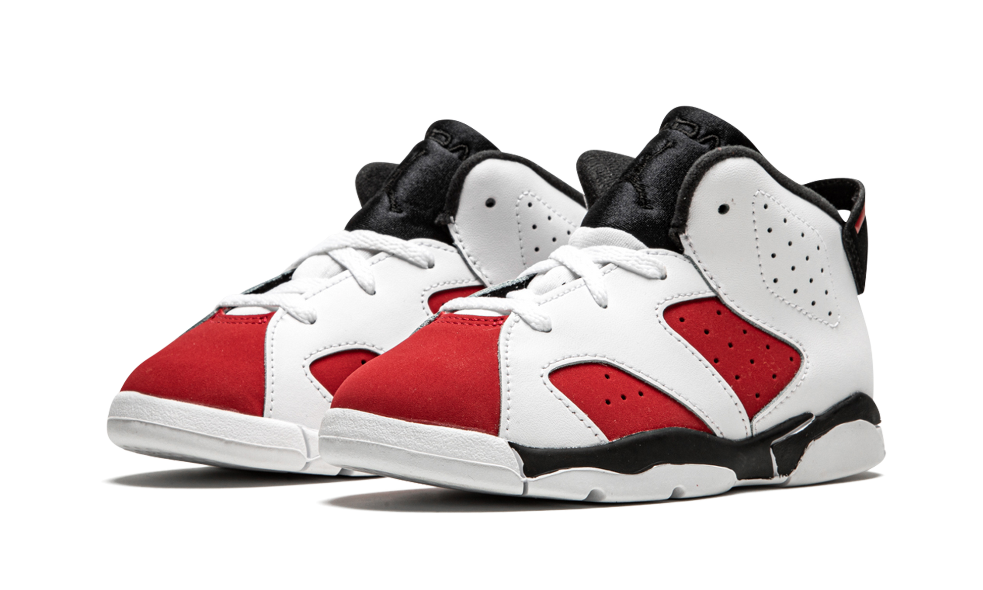 The Air Jordan 6 TD “Carmineâ€?is the toddler sizing of an original. Chicago Bulls-centric colorway of Michael Jordan's sixth signature shoe. This version of the “Carmineâ€?brings back the original Nike logo branding on the heel of the shoe for the first time since the colorway's debut in 1991. Coincidentally. the return of the “OGâ€?styling coincides with the Air Jordan 6's 30-year anniversary celebration in 2021. As for the design. Jordan Brand gives the updated “Carmineâ€?its correct shade of red or “Carmineâ€?synthetic nubuck base. The perforations on either side of the shoe and collar are consistent with the original styling of the Air Jordan 6. Release date: February 13. 2021.