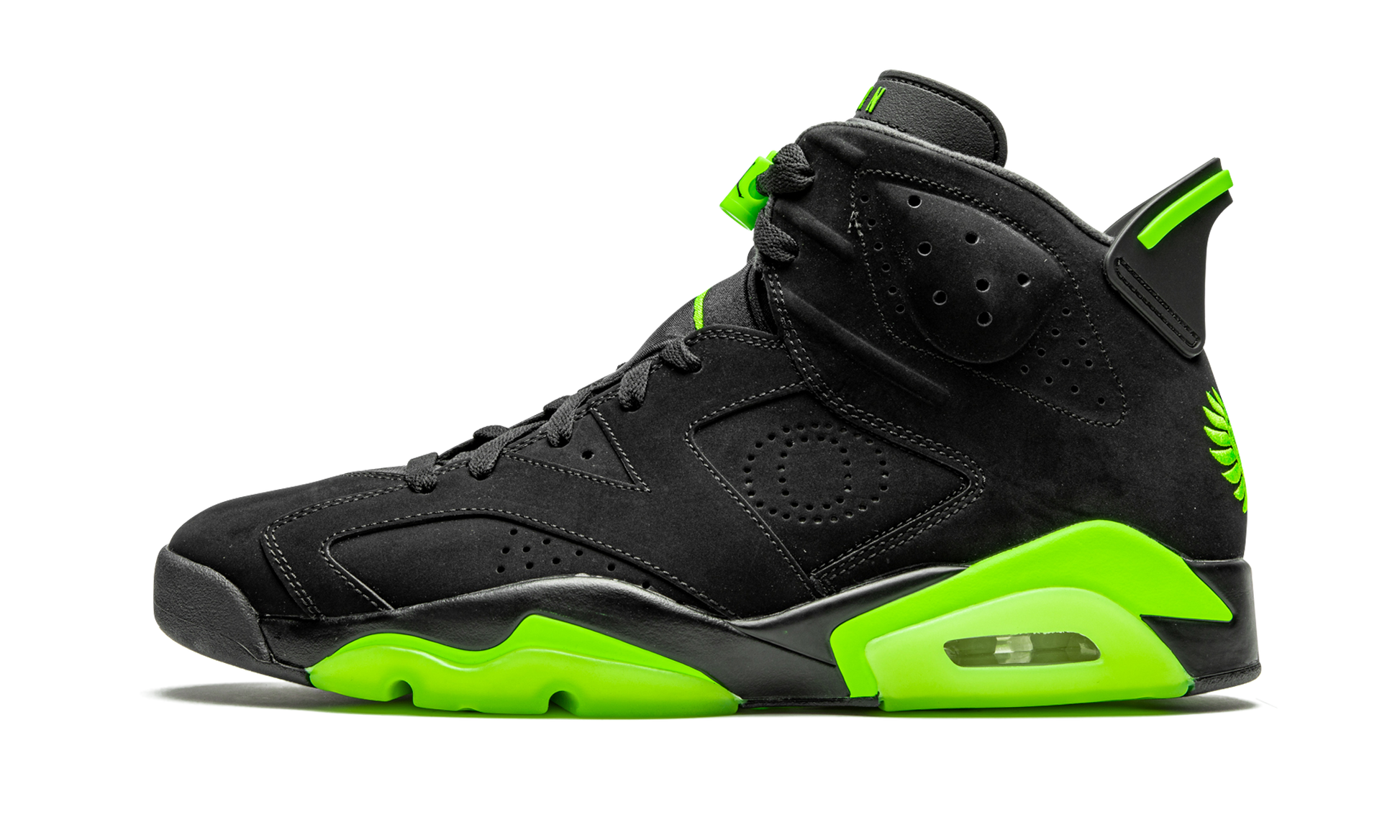The Air Jordan 6 “Oregon Ducks PEâ€?is a highly desirable. limited edition colorway given to student athletes on the Oregon Ducks sports teams. Unreleased to the general public. this Jordan 6 “Oregon Ducks PEâ€?is one of several imaginative Air Jordans created exclusively for the Oregon Ducks. The upper features a black nubuck construction. Tonal overlays can be found on the forefoot. mid-panel. and heel. Contrasting neon green accents dot the Jumpman on the black nylon tongue. the lace lock. spoiler. and “Air Jordanâ€?branding on the tongue. Additionally. specially perforated “Oâ€?logos can be found on either side and the Ducks' “Wingsâ€?logo is embroidered on the heel.