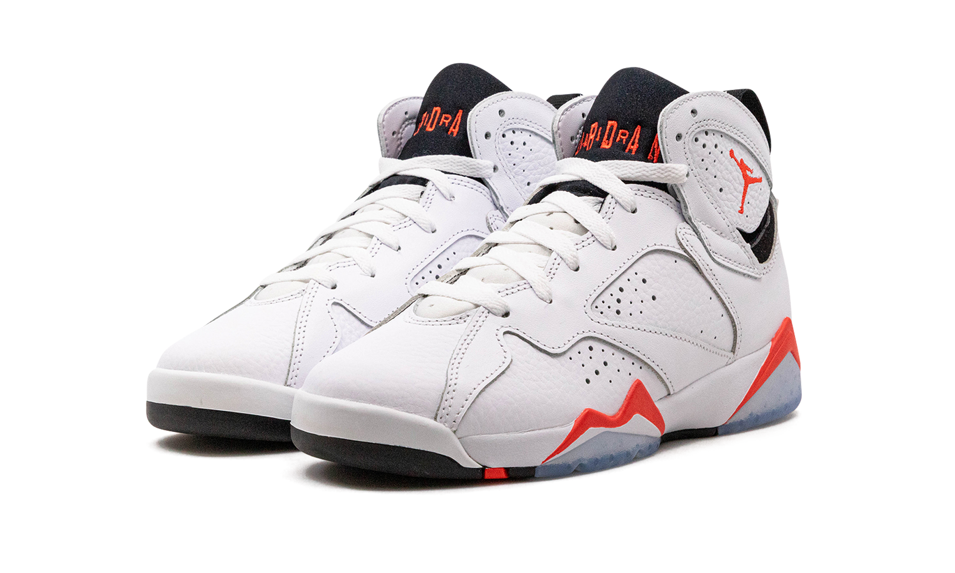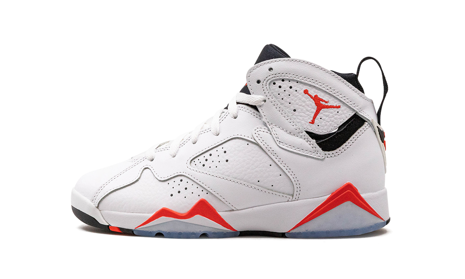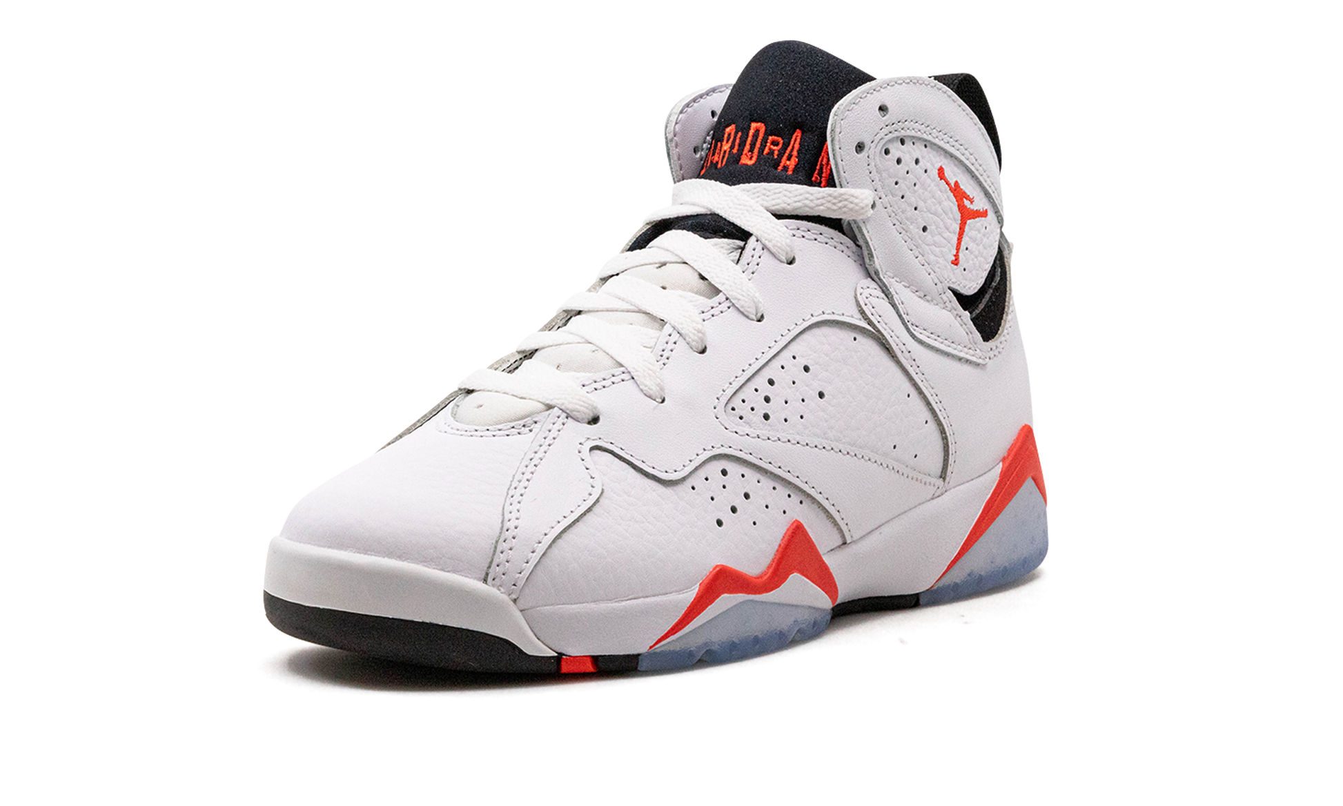 The Air Jordan 7 GS “Infraredâ€?is the youth sizing of the colorway of Michael Jordan's seventh signature shoe that borrows an original color scheme of the Air Jordan 6. The “White Infraredâ€?Jordan 7 is inspired by the Air Jordan 6 of the same nickname. The shoe features a white leather upper with tonal leather overlays. An Infrared Jumpman is embroidered on the collar and Infrared â€?3â€?branding appears on the heel. Additional Infrared accenting comes into play on the midsole and icy clear rubber portions of the outsole add the final nod to the original Jordan 6 colorway. Release date: June 30. 2023