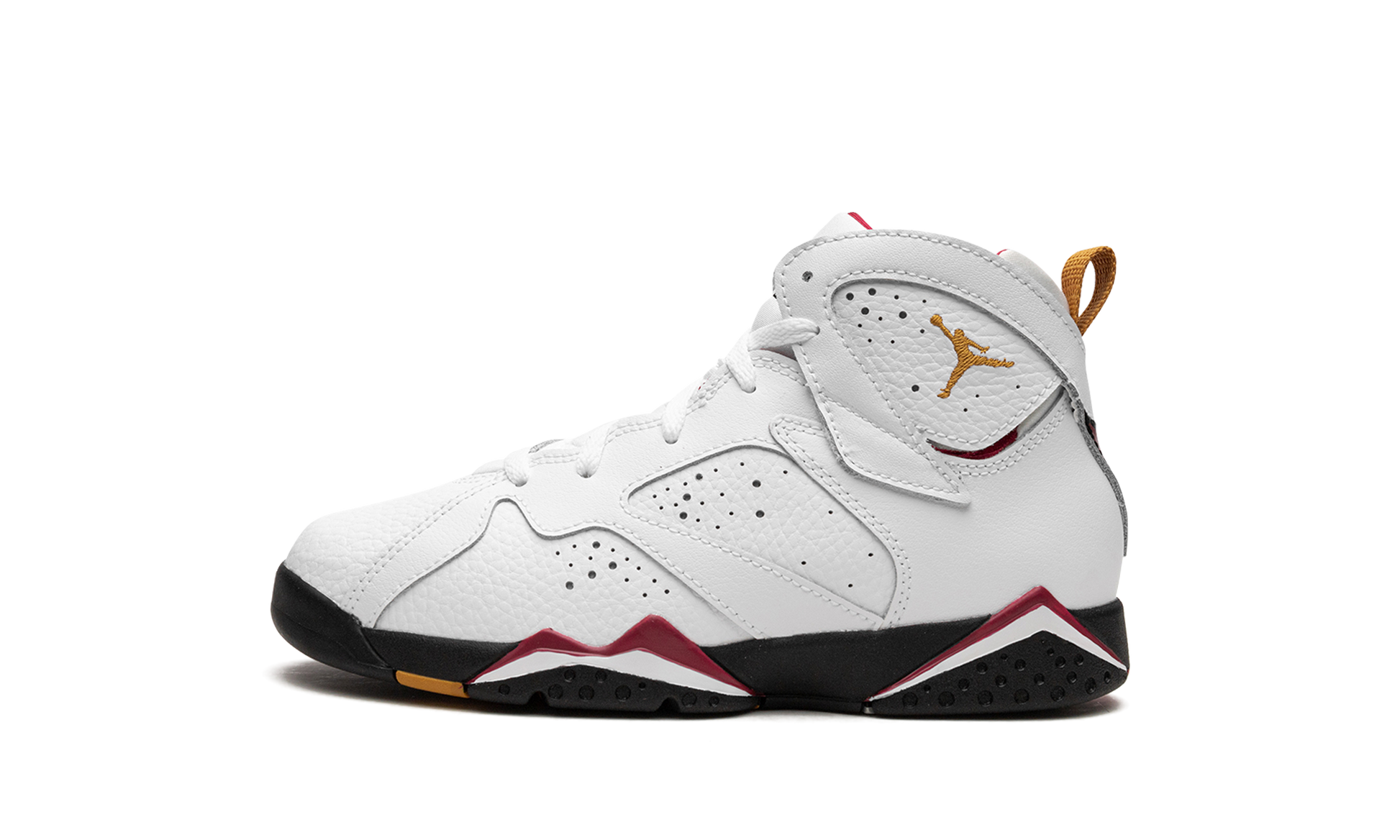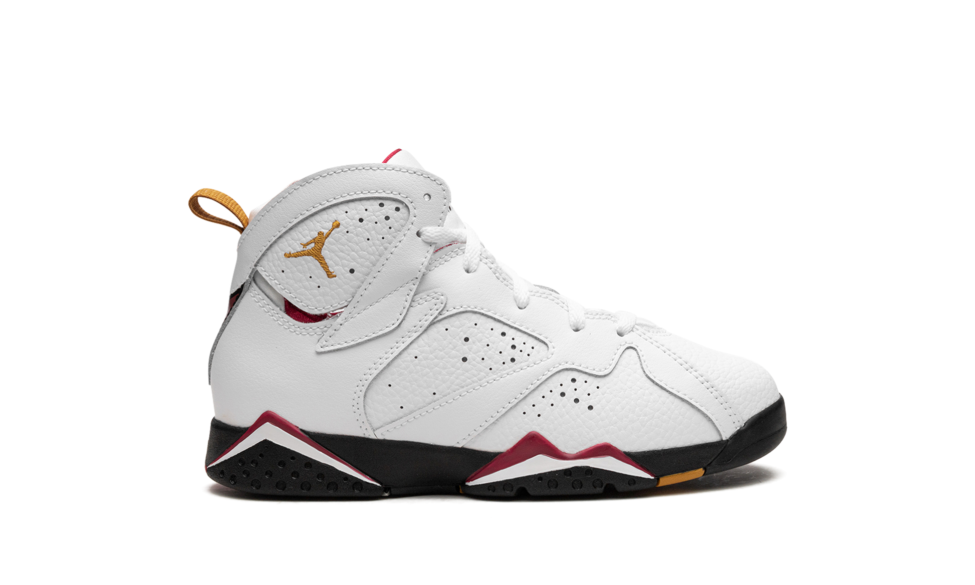 The Air Jordan 7 PS “Cardinal 2022â€?is the alternate preschool sizing of an original colorway of Michael Jordan's retro basketball shoe that debuted in 1992 and was re-released in true-to-original form in November 2022. Jordan Brand honored the Jordan 7's 30th anniversary by bringing back several iconic colorways from back in the day. including the “Cardinalâ€?style that Jordan wore with the Chicago Bulls. The shoe features a white leather upper with perforations on the sides. A bronze-colored embroidered Jumpman is found on the collar. Classic â€?3â€?branding is found on the heel beneath the yellow nylon pull tab. “Air Jordanâ€?detailing appears on the tongue. The black midsole is accented with Cardinal Red and white. Release date: November 26. 2022
