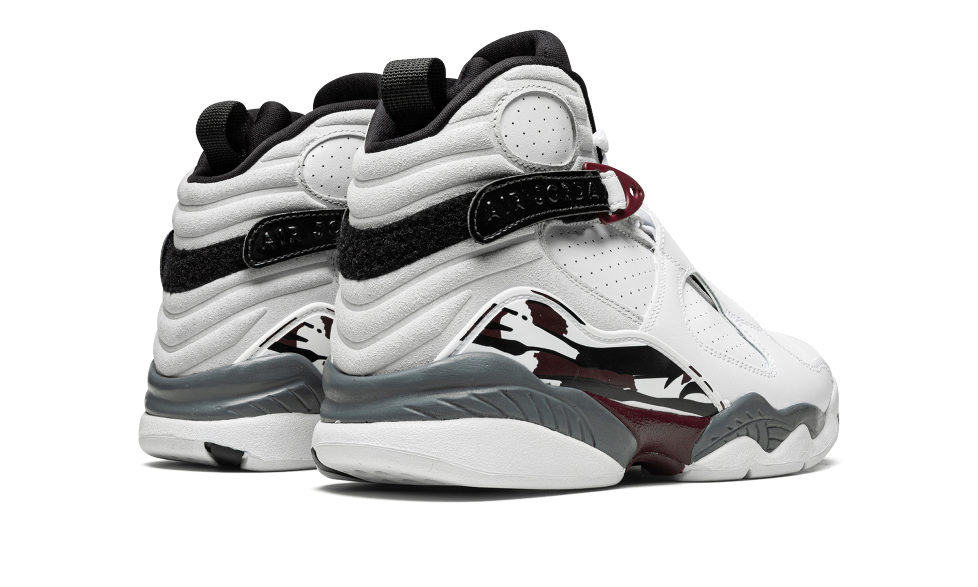 The Women's Air Jordan 8 “Burgundyâ€?is a women's exclusive colorway of Michael Jordan's eighth signature shoe that features an autumnal vibe. Sporting a neutral vibe throughout its design. the Jordan 8 “Burgundyâ€?is a must-have for fans of classic performance inspired footwear. Smooth white leather forms the base of the upper and is visible on the toe and dotted paneling on either side. Subtle Neutral Grey suede can be found on the collar and the back of the shoe. Additional design elements include white leather criss-cross straps with â€?3â€?branding. a black adjustable ankle strap. and a multicolored chenille Jumpman on the tongue. A white. grey. and burgundy print on the mudguard finishes off the look of the Women's Air Jordan 8 “Burgundy.â€?Release date: December 4. 2020.