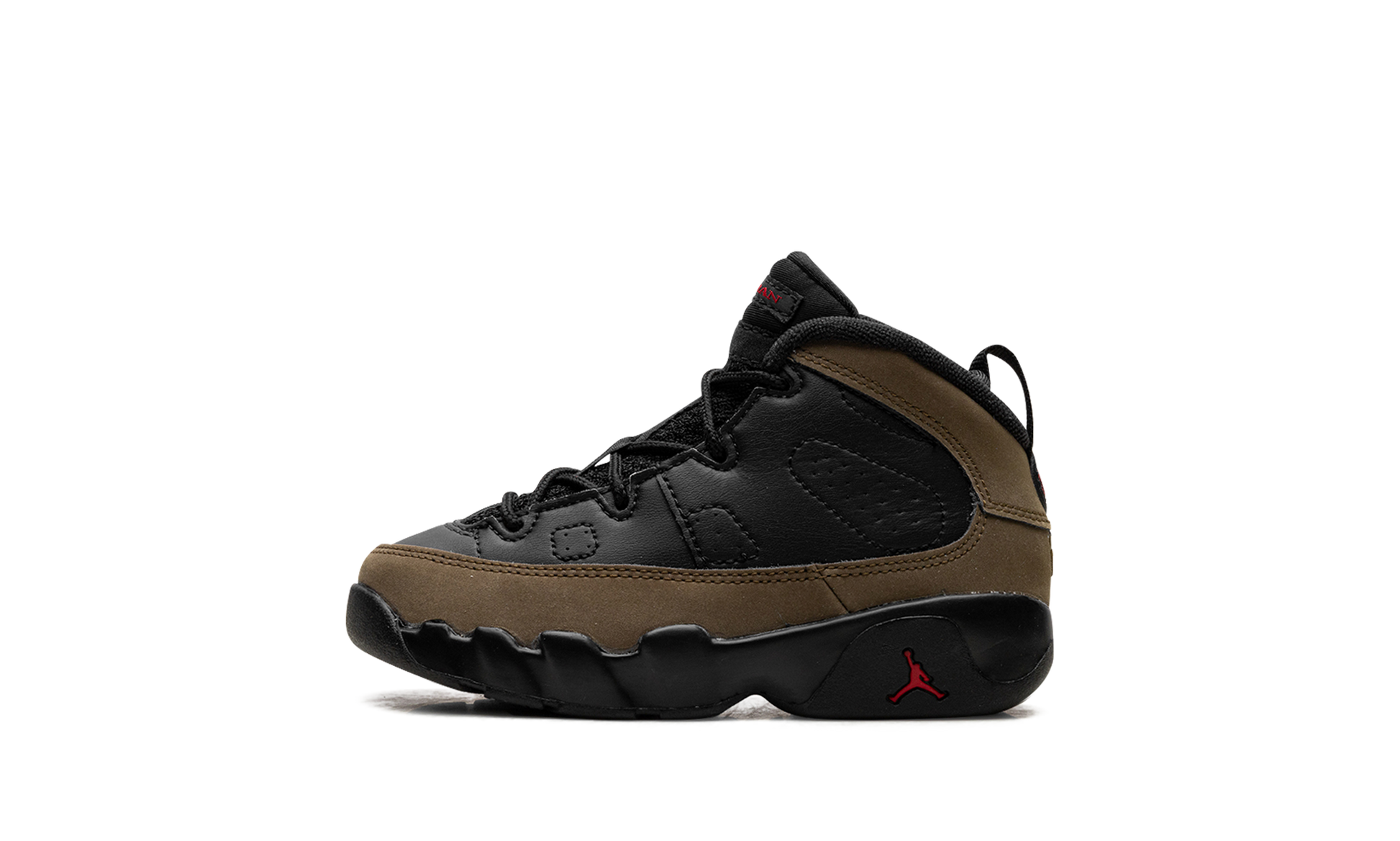 The Air Jordan 9 TD “Olive 2024â€?is the toddler sizing of the 2024 reissue of an original colorway of Michael Jordan's ninth signature shoe. The Jordan 9 “Oliveâ€?was designed by legendary Nike shoe designer Tinker Hatfield and released in 1994. It is regarded as one of the most popular colorways of the Jordan 9. On the 2024 re-release. Jordan Brand brings back the shoe's original styling. much to the delight of sneaker collectors. The upper features a black leather construction with Light Olive suede on the mudguard. collar. and heel. Varsity Red “Air Jordanâ€?branding appears on the tongue. and a Varsity Red Jumpman can be found on the lateral side of the black midsole. Additional Varsity Red detailing appears in the form of a “globeâ€?on the heel. and an oversized Jumpman on the black rubber outsole. Release date: October 25. 2024