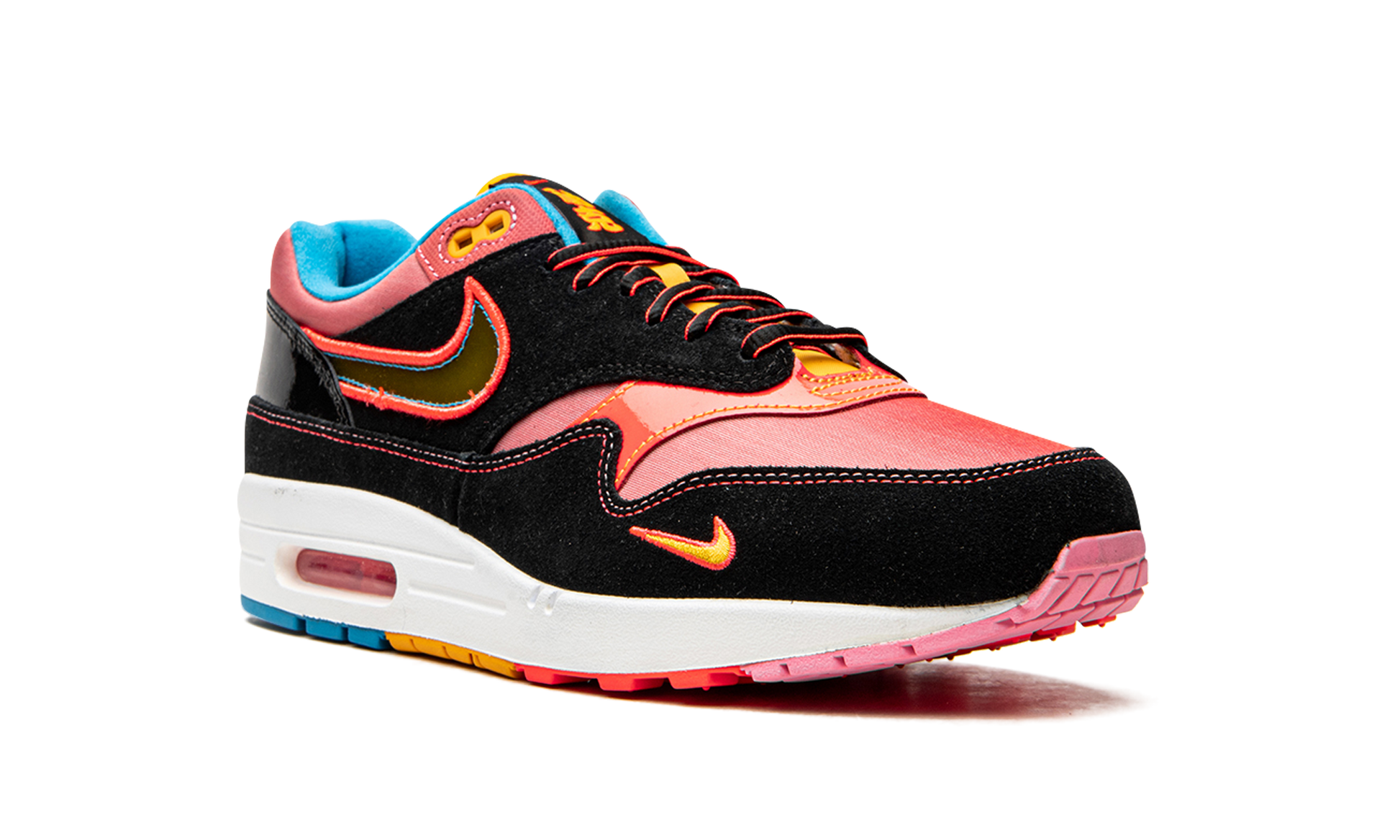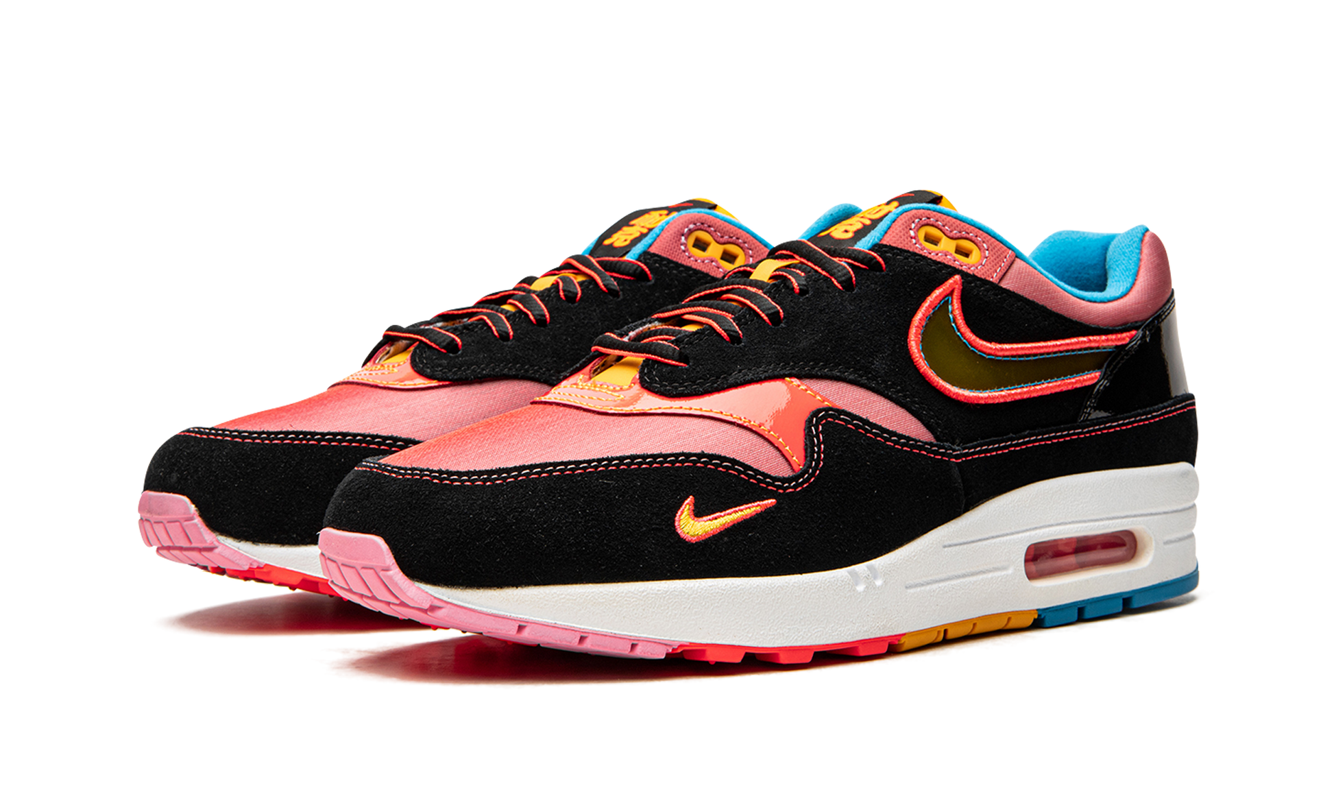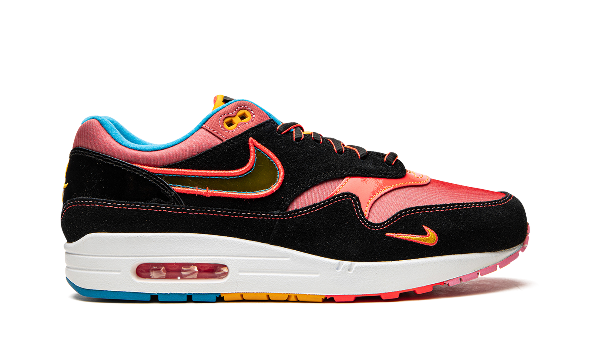 The Nike Air Max 1 “Chinatownâ€?takes inspiration from New York City's Chinatown neighborhood. This colorful release features several alterations including a pale red mesh base with black suede overlays and red patent leather detailing. Thick red contrast stitching outlining the translucent plastic Swooshes and a mini Swoosh at the toe add unique touches. Nike places Chinese characters on the tongue and a winged horse in place of traditional Nike Air branding on the heel. Two-tone red and black laces and a multicolored rubber outsole add the final special details to the "Chinatown" Air Max 1.