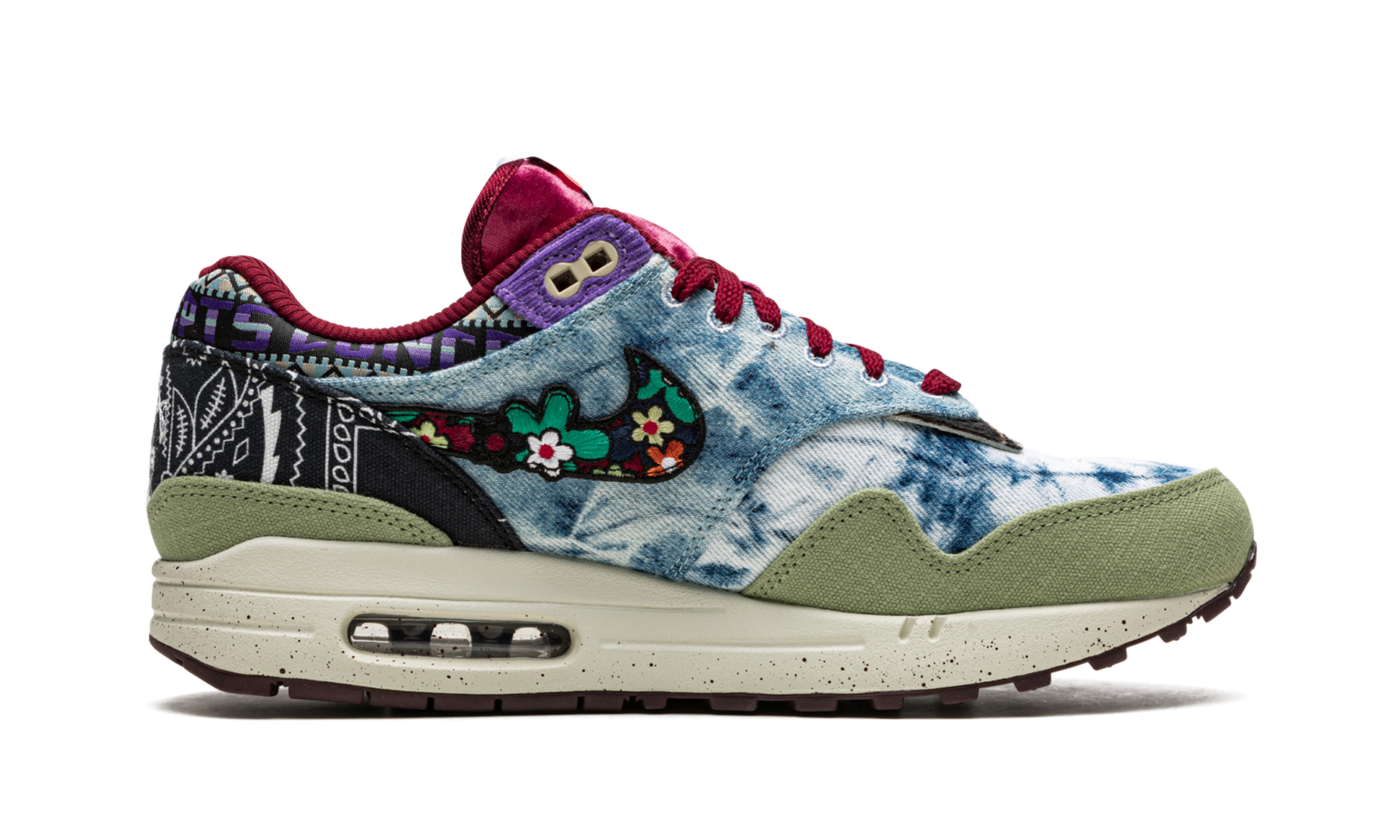 The Concepts x Nike Air Max 1 “Mellowâ€?is a collaboration between the Boston based sneaker boutique and Nike on the vintage running shoe in a colorway inspired by 1960s and 1970s youth culture. The “Mellowâ€?colorway draws favorably from the era's music festivals. specifically the '69 Harlem Cultural Festival. which was headlined by the likes of Stevie Wonder. Nina Simone. and many more. The unique fashion worn by the festival's headlining acts and concert goers informs the eye-catching bandana. cowhide. denim. and woven materials found on the “Mellow'sâ€?design. Velvet accenting. frayed edges. and a multicolor Swoosh accentuate the shoe's “flower powerâ€?design ethos. Release date: March 5. 2022