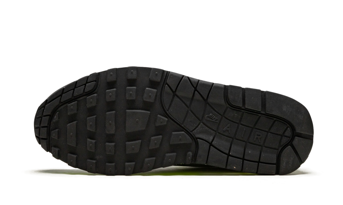 Produced in collaboration with artist Flavio Samelo and his wife Jayelle Hudson. this thoroughly unique take on the Air Max 1 for women features a geometric graphic from the artist at its base with a blacked-out toe and Volt accents.