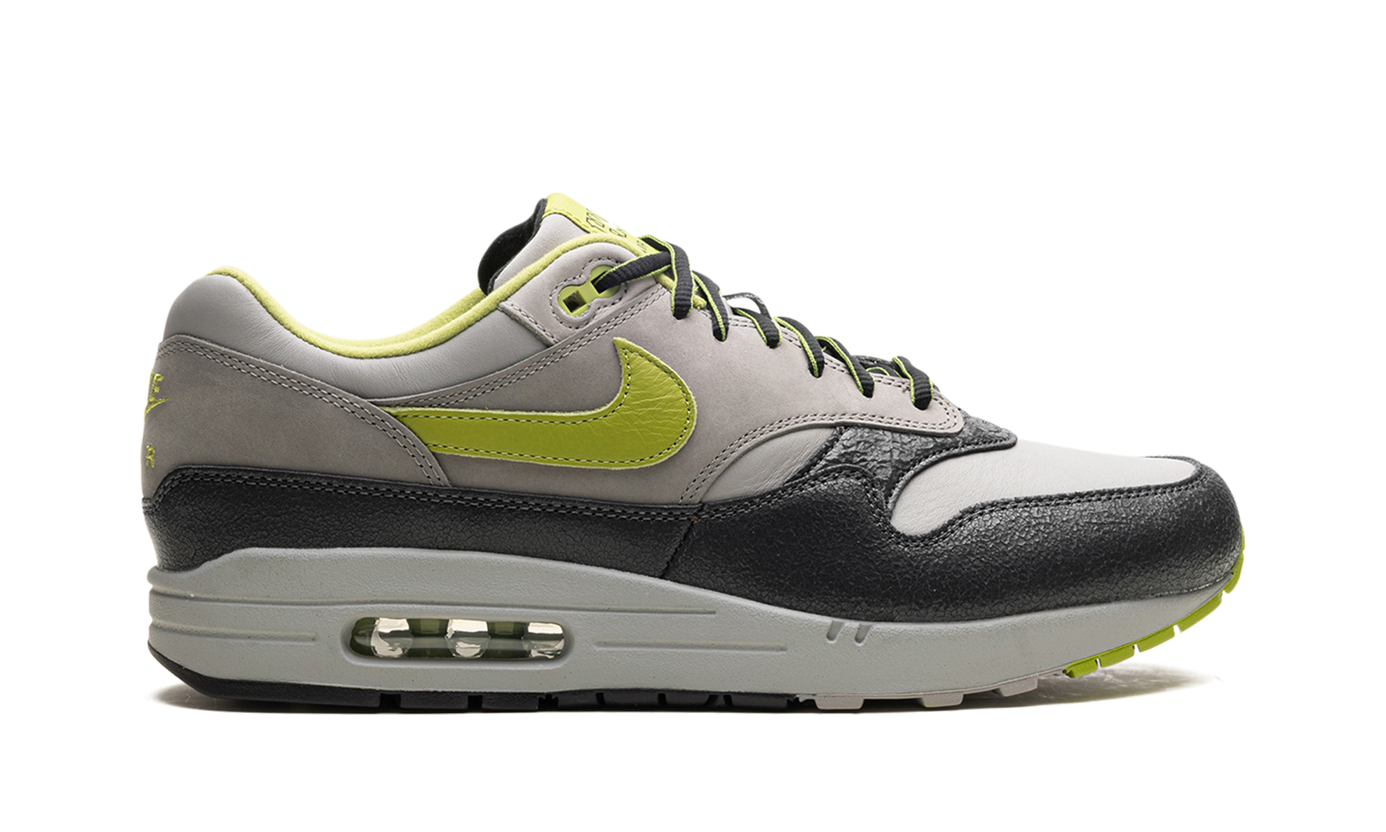 The HUF x Nike Air Max 1 SP “Pearâ€?is a collaboration between the San Francisco based skate brand and Nike on the retro running shoe. From a three-piece collection. the “Pearâ€?celebrates the 20th anniversary of the brand's first project released in 2004. Moreover. the pack is inspired by an unreleased sample Air Max 1 by HUF. Here. the upper features a grey nubuck construction with Anthracite-colored cracked leather on the forefoot overlay and mudguard. Pear accenting can be found on the leather Swoosh. “Nike Airâ€?branding on the heel. the co-branding on the tongue tag. and inner lining. Two-tone black-and-green laces complete the look. Release date: June 15. 2024