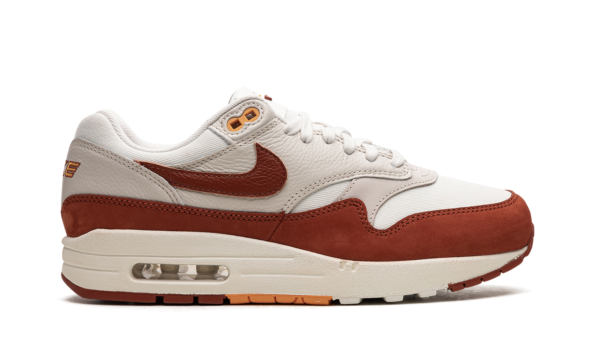 The Women's Nike Air Max 1 LX "Rugged Orange" is a women's-exclusive colorway of the retro running shoe with fiery orange features. Designed with a fall-adjacent look. the Air Max 1 LX “Rugged Orangeâ€?has a Sail mesh base with Sail leather overlays and a Rugged Orange leather Swoosh. Additional Rugged Orange detailing can be seen on the suede mudguard. on the “Nike Airâ€?branding on the heel. and on the “Nikeâ€?and Swoosh designs on the tongue. A small visible Air unit in the heel of the foam midsole completes the clean colorway. Release date: July 28. 2023