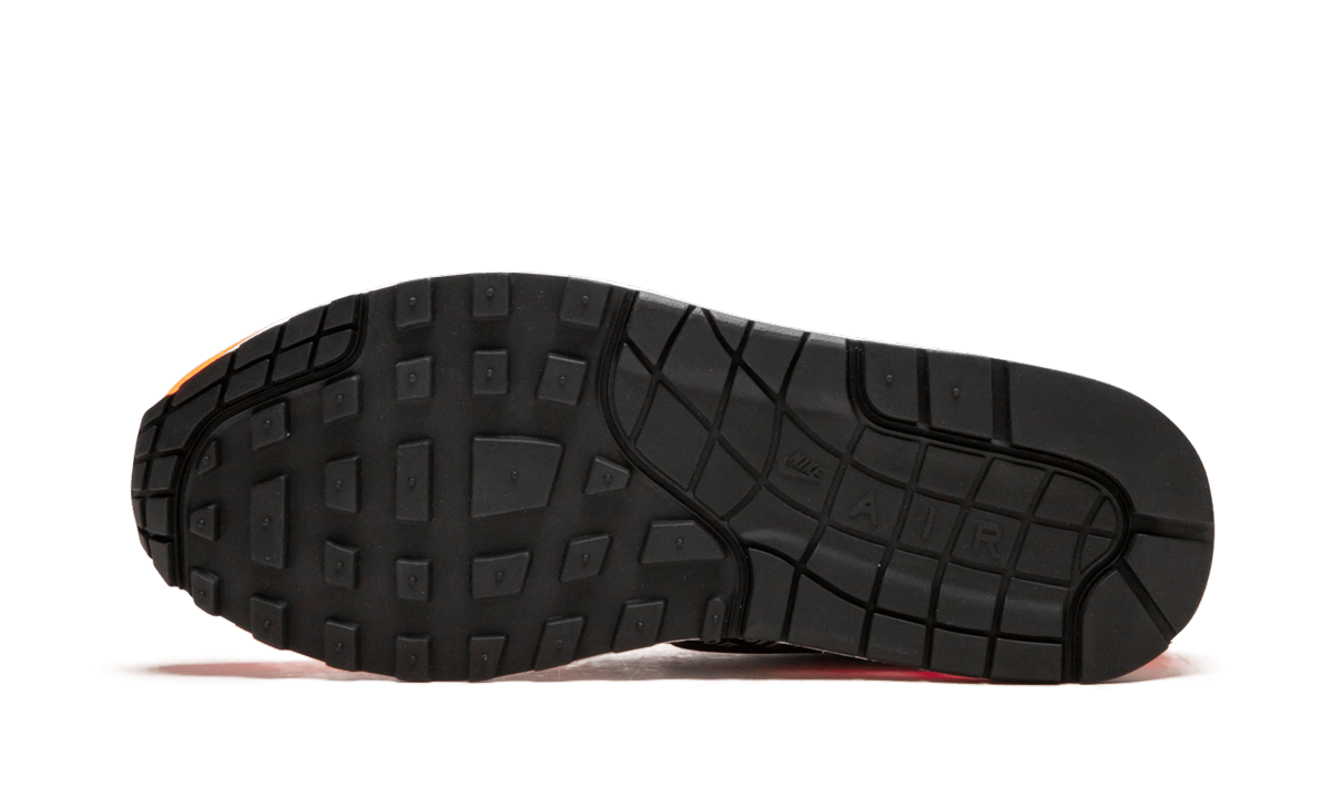The Nike Air Max 1 Premium celebrates the brand's unforgettable "Just Do It" phrase that has spoken to professional and amateur athletes all over the world. Designed with a black base. an all-over. overlapping "Just Do It" graphic appears on most of the upper. Despite a busy graphic pattern. solid orange steals the show on the Nike runner's signature mudguard. tongue. lining. and Air Max bubble. The Nike Air Max 1 Premium comes with a stark white midsole for contrast and a black outsole underneath.