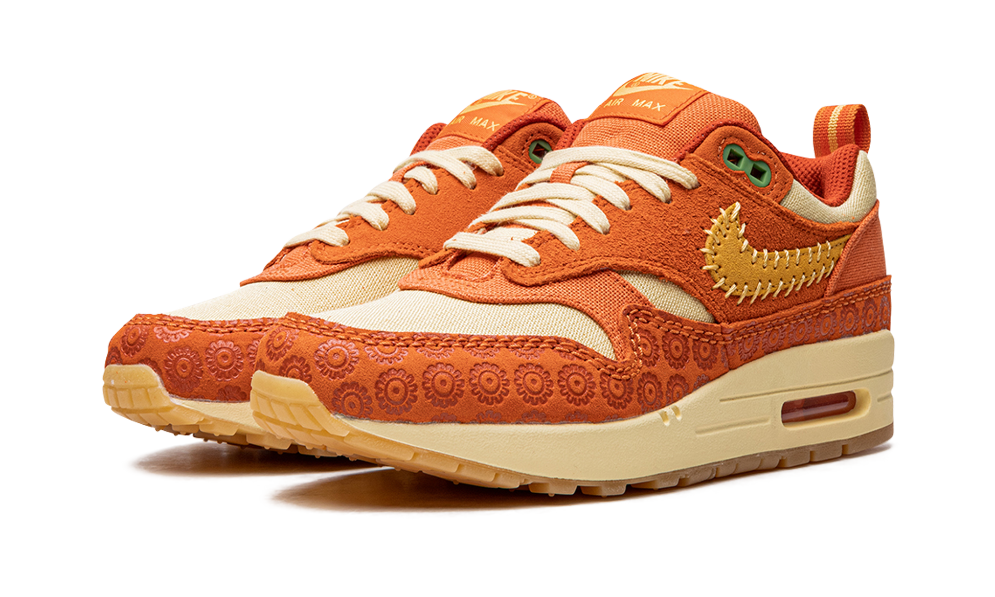 The Women's Nike Air Max 1 “Somos Familiaâ€?is the women's sizing of the classic running shoe in a colorway inspired by the idea of family. The “Somos Familiaâ€?Air Max 1 is part of a larger collection of sneakers by Nike in vibrant colors that celebrate Latino Heritage Month. Specifically. the shoe's design is complete with a burlap base that's contrasted with fiery orange textile overlays. A debossed sun motif appears on the mudguard. The yellow suede Swoosh on both sides of the shoe features contrast stitching. A green butterfly logo is embroidered on the heel. Retro “Nike Air Maxâ€?detailing can be found on the tongue. The shoe's aged-looking midsole gives it a vintage appearance. Release date: October 26. 2022