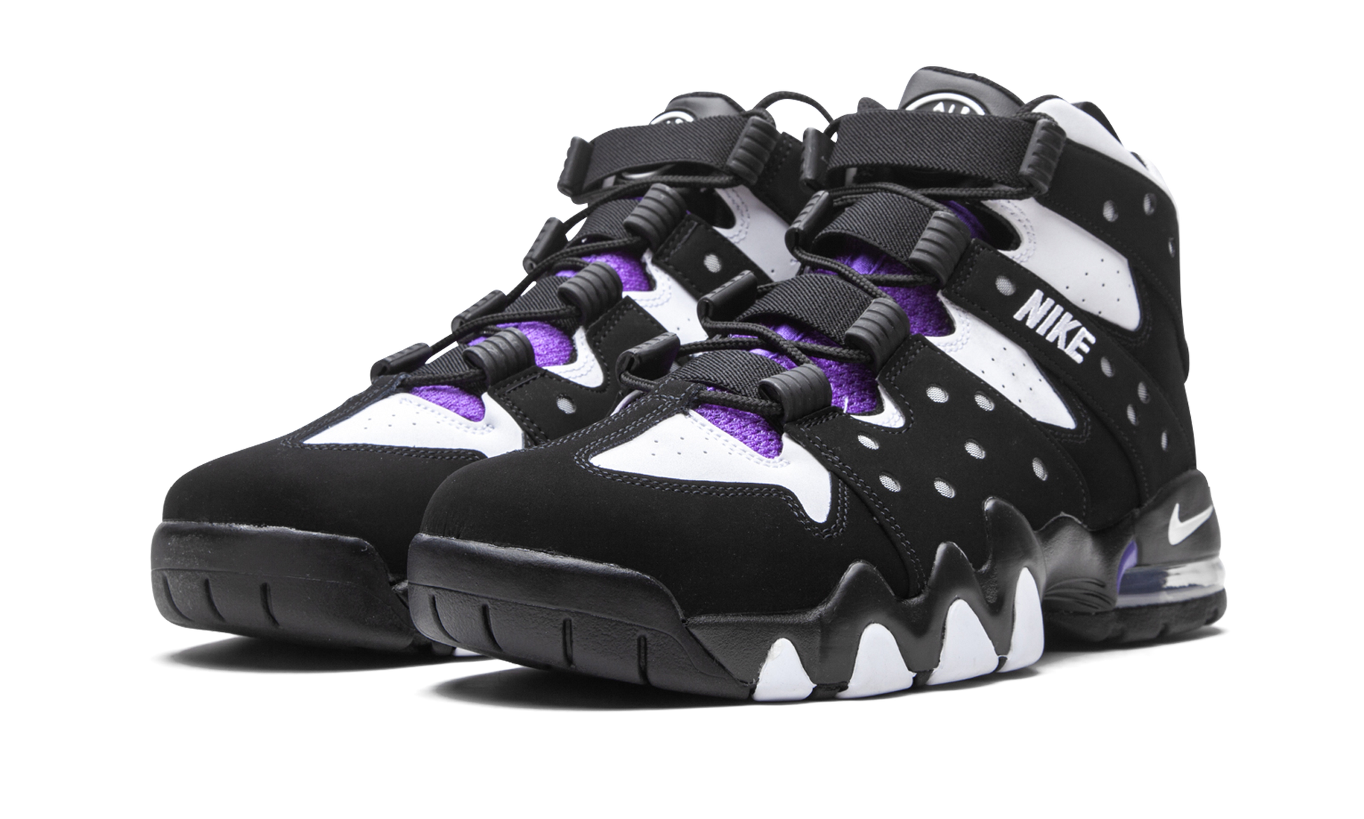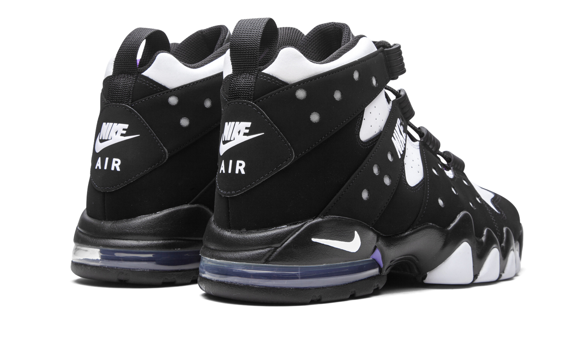The Nike Air Max 2 CB '94 â€?020 Retroâ€?is an original colorway of Charles Barkley's signature performance basketball shoe from the '90s. Quintessentially retro from a design standpoint. the Air Max 2 CB '94 returns in its true-to-original form for this Fall 2020 release. The design by Tinker Hatfield. which is inspired by the look of a straitjacket. features a split white leather and black synthetic nubuck design along the eyelets and midsole. respectively. White “Nikeâ€?embroidery appears on the midfoot harness that supports the lacing system. Additional details include purple accenting on the nylon tongue. white “Nike Airâ€?embroidery on the heel. and a mini Swoosh on back of the midsole. A visible Air unit in the heel with purple accenting completes the look of this classic hoops silhouette from Nike Basketball.