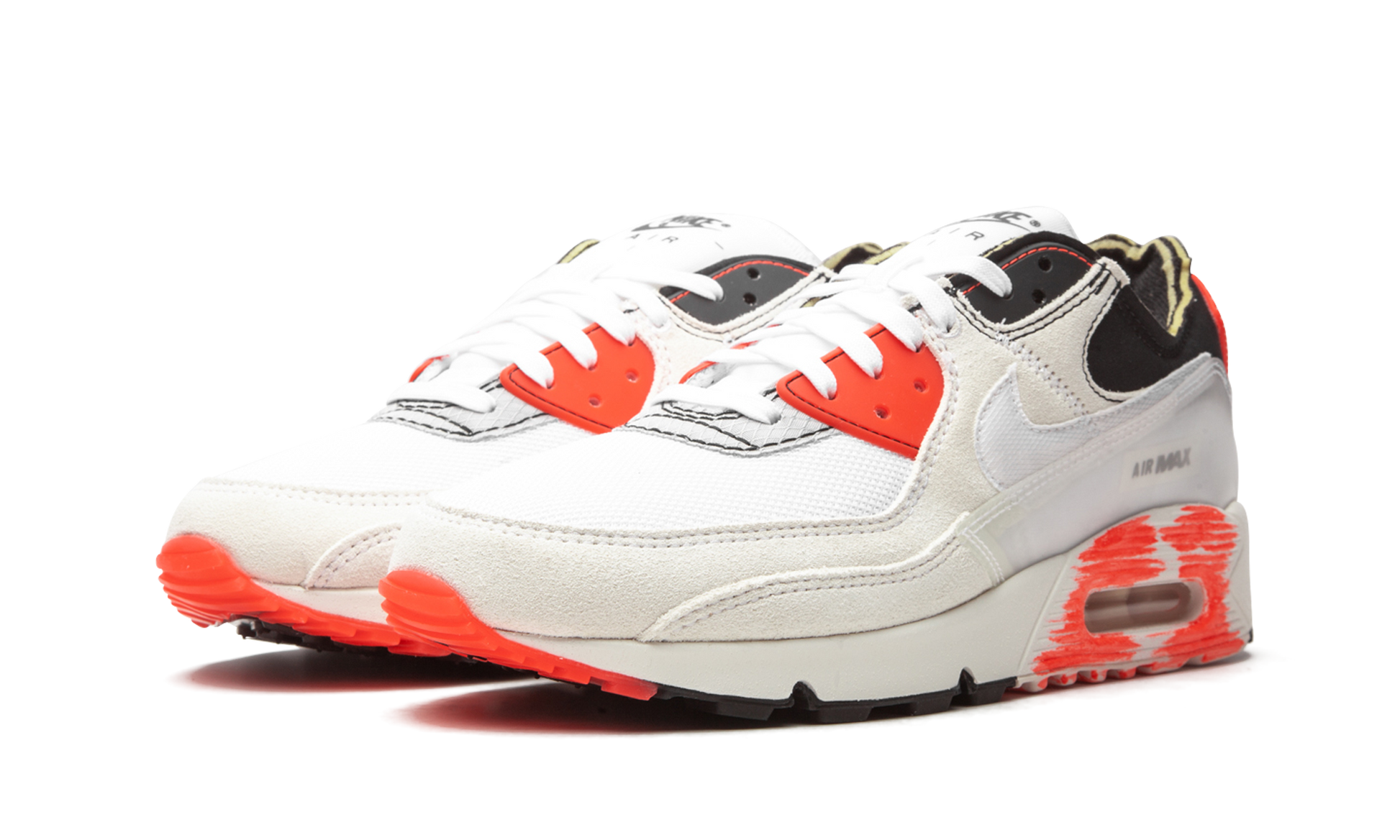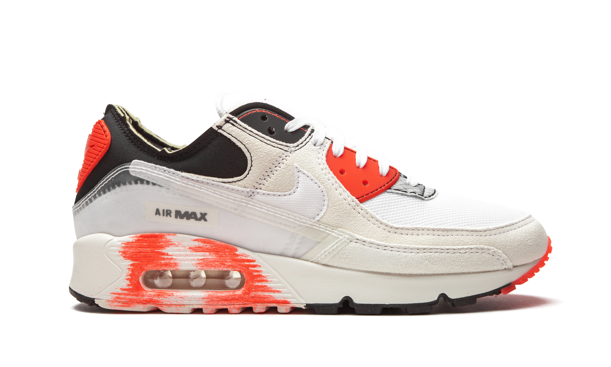 The Nike Air Max 90 “Archetypeâ€?is based on an early sketch by the model's designer. Tinker Hatfield. With an intentionally “unfinishedâ€?look. the “Archetypeâ€?is one of the more progressive Air Max 90s on the market today. Examples of the model's “rawâ€?aesthetic can be found on the exposed foam padding around the ankle collar. exposed white stitching above the stripped-down mudguard. and grey nylon eyelet overlay on the toe. Durable white mesh can be found on the toe. Overlaid grey suede panels appear on the forefoot and mid-panel. A white embroidered Swoosh can be found on either side of the shoe and translucent “Nike Airâ€?detailing is located on the Bright Crimson overlay on the heel. Additional fiery red accenting dots the middle eyelet and the overlay that surrounds the visible Air unit in the heel. Release date: December 10. 2020.