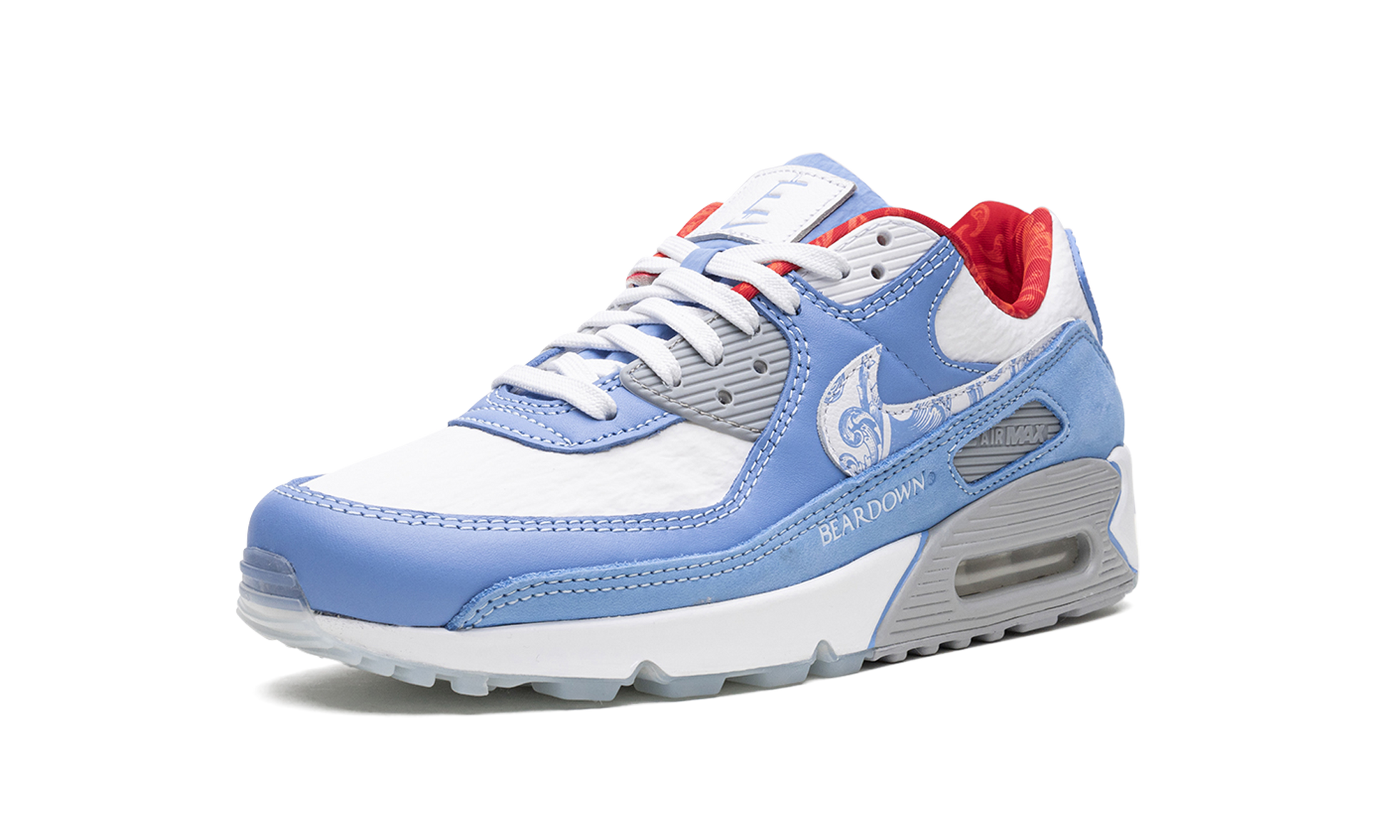 The Nike Air Max 90 “Doernbecher 2023â€?is a special colorway of the retro running shoe from Nike's popular collaboration with Portland. Oregon's Doernbecher Children's Hospital. Designed by patient Emerson Harrell. the “Doernbecher 2023â€?Air Max 90 features design elements specific to Emerson's story. specifically his dreams of being an investor. The shoe is complete with a white textile base with contrasting Valor Blue leather overlays. Unique money-inspired graphics are found on the white leather Swoosh on the sides and on the crimson red inner lining. “Bear Downâ€?is debossed on the lateral side of the mudguard as a nod to Emerson's favorite college team. the Arizona Wildcats. Release date: February 25. 2023