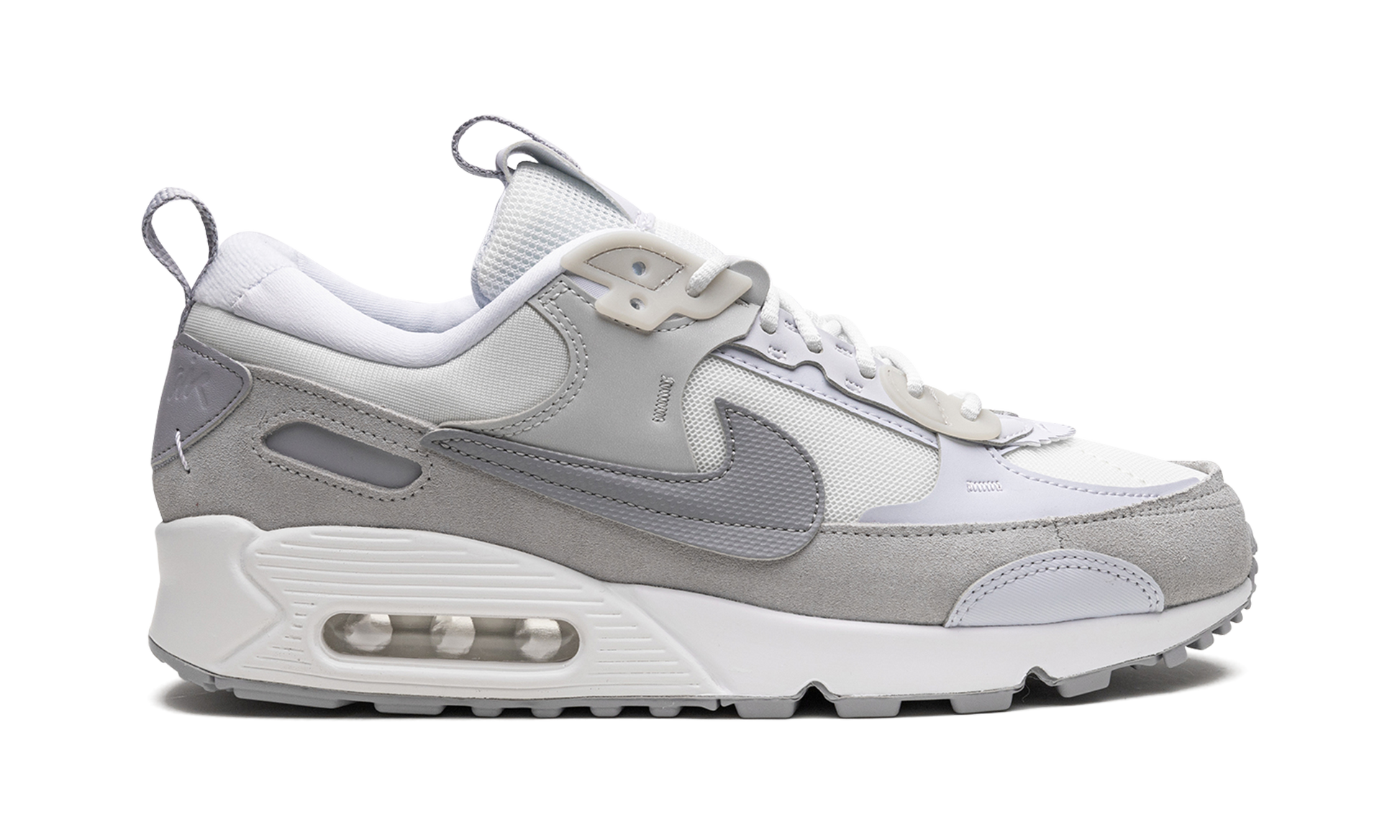 The Women's Nike Air Max 90 Futura “Summit White/Pure Platinumâ€?is an alternate. women's-exclusive edition of the vintage running shoe that modifies its design with an oversized Swoosh and other updates. The Air Max Futura revamps the Air Max 90's classic design for the present—and future—with a new design concept that includes a mesh base. rough-cut overlays. and an oversized Swoosh on either side that draws favorably from Off-White and Sacai's progressively-designed sneaker collaborations with Nike. The “Summit White/Pure Platinumâ€?features all of the details mentioned above in a combination of white and grey tones.