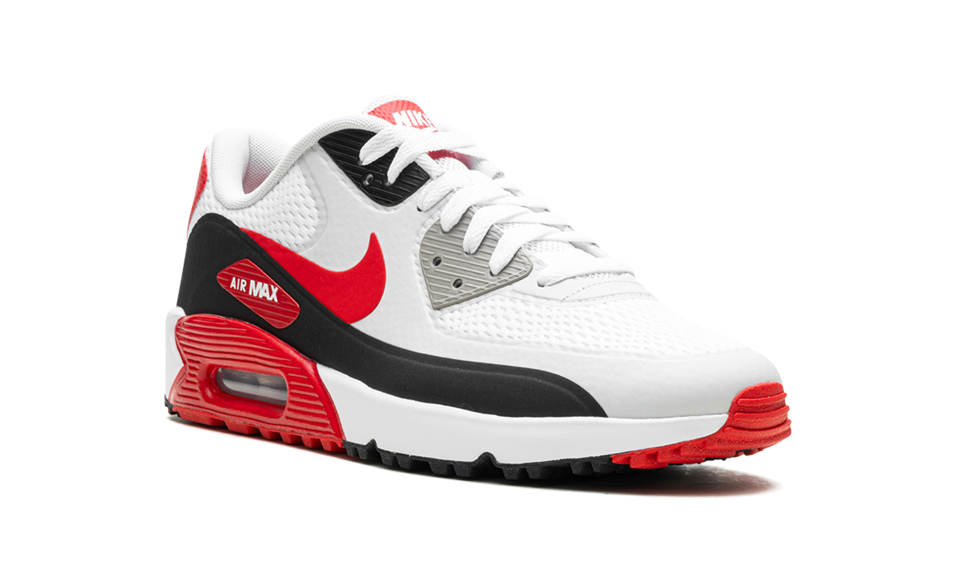 The Nike Air Max 90 Golf “University Redâ€?is an alternate version of the vintage performance running shoe redesigned for the fairway. The “University Redâ€?Air Max 90 Golf has a classic. '90s-inspired look that plays into the shoe's throwback design. It features a white mesh base with light grey leather overlays throughout. A University Red leather Swoosh logo appears on both sides. and an “Air Maxâ€?branding overlay is found on the lateral side of the shoe. Small nubs on the outsole provide traction on a golf course. Release date: March 31. 2023