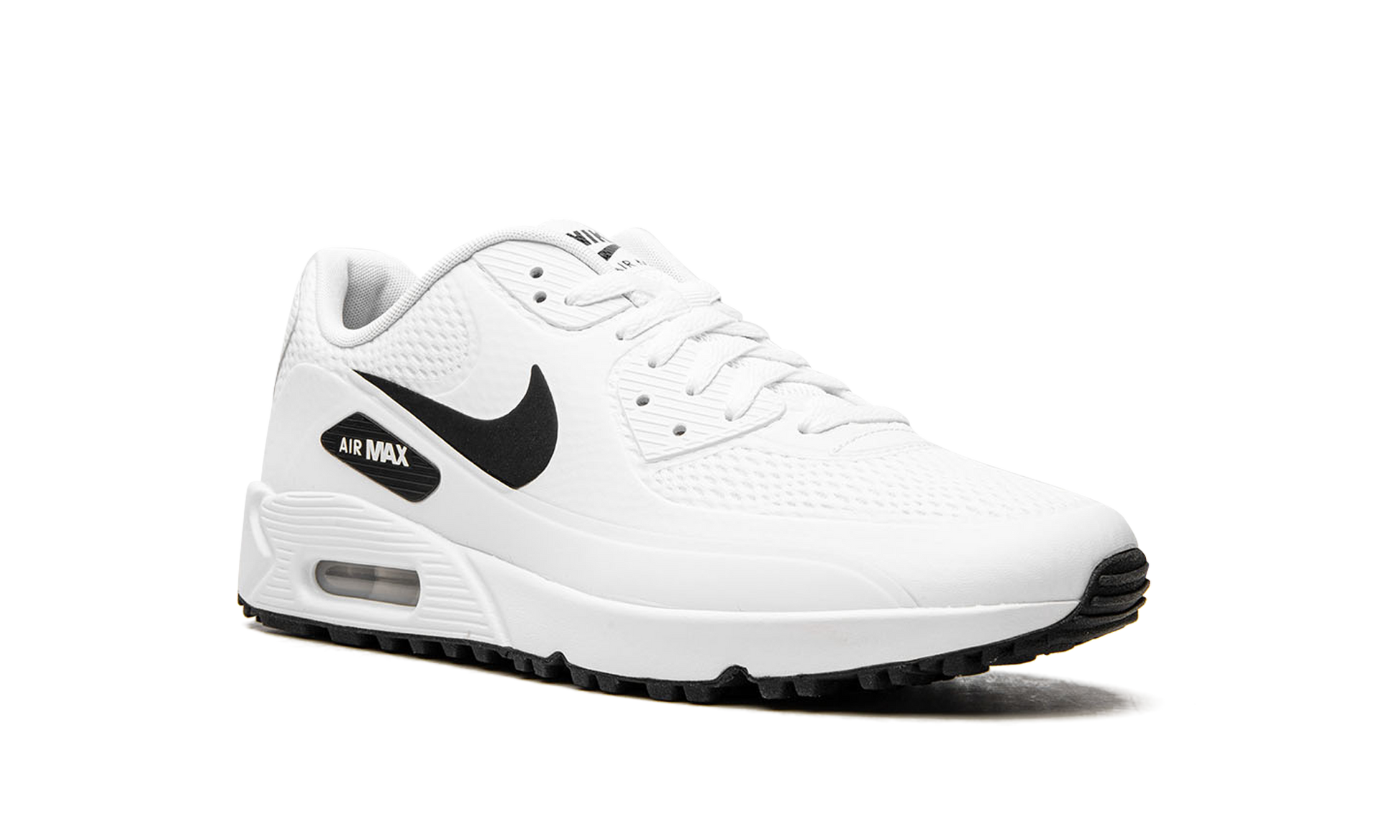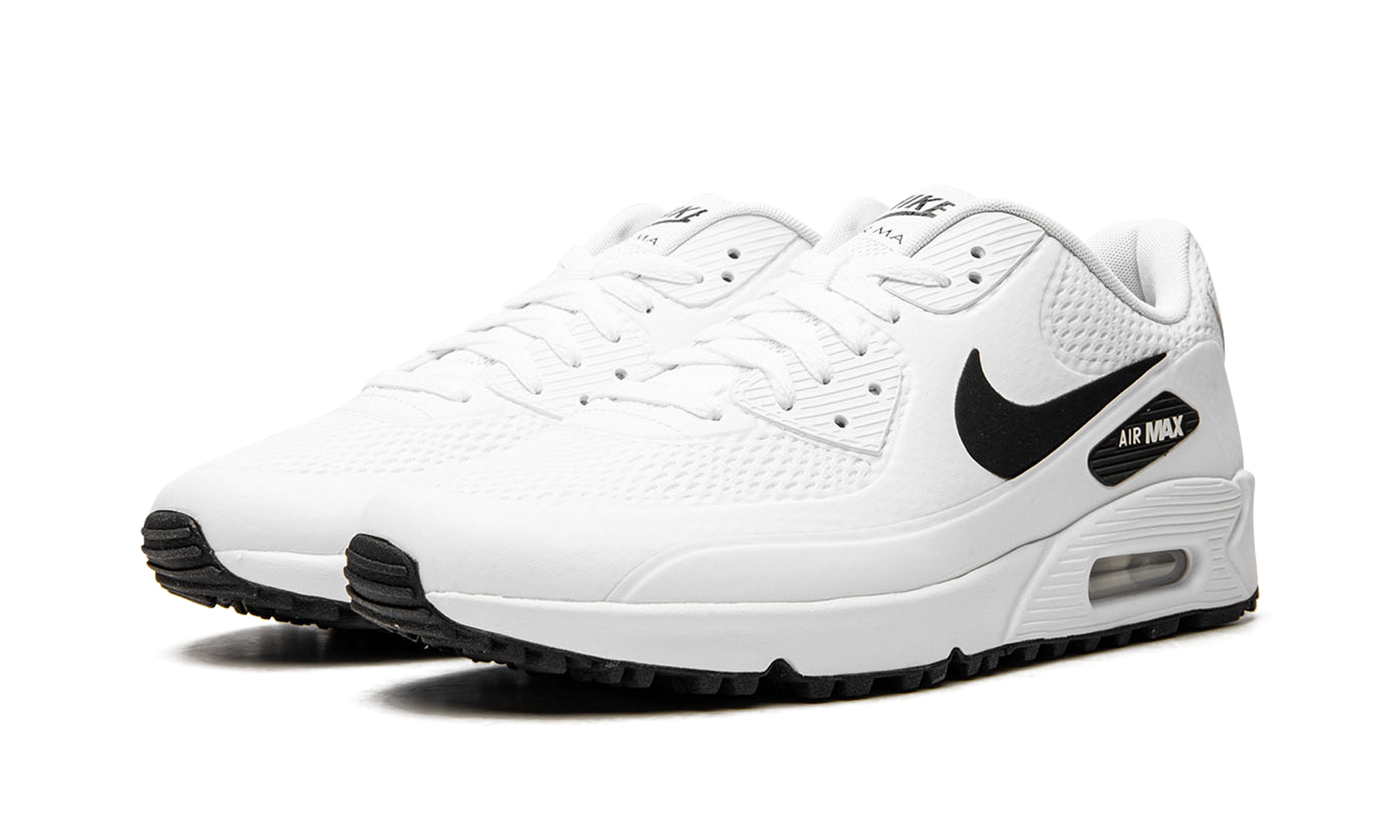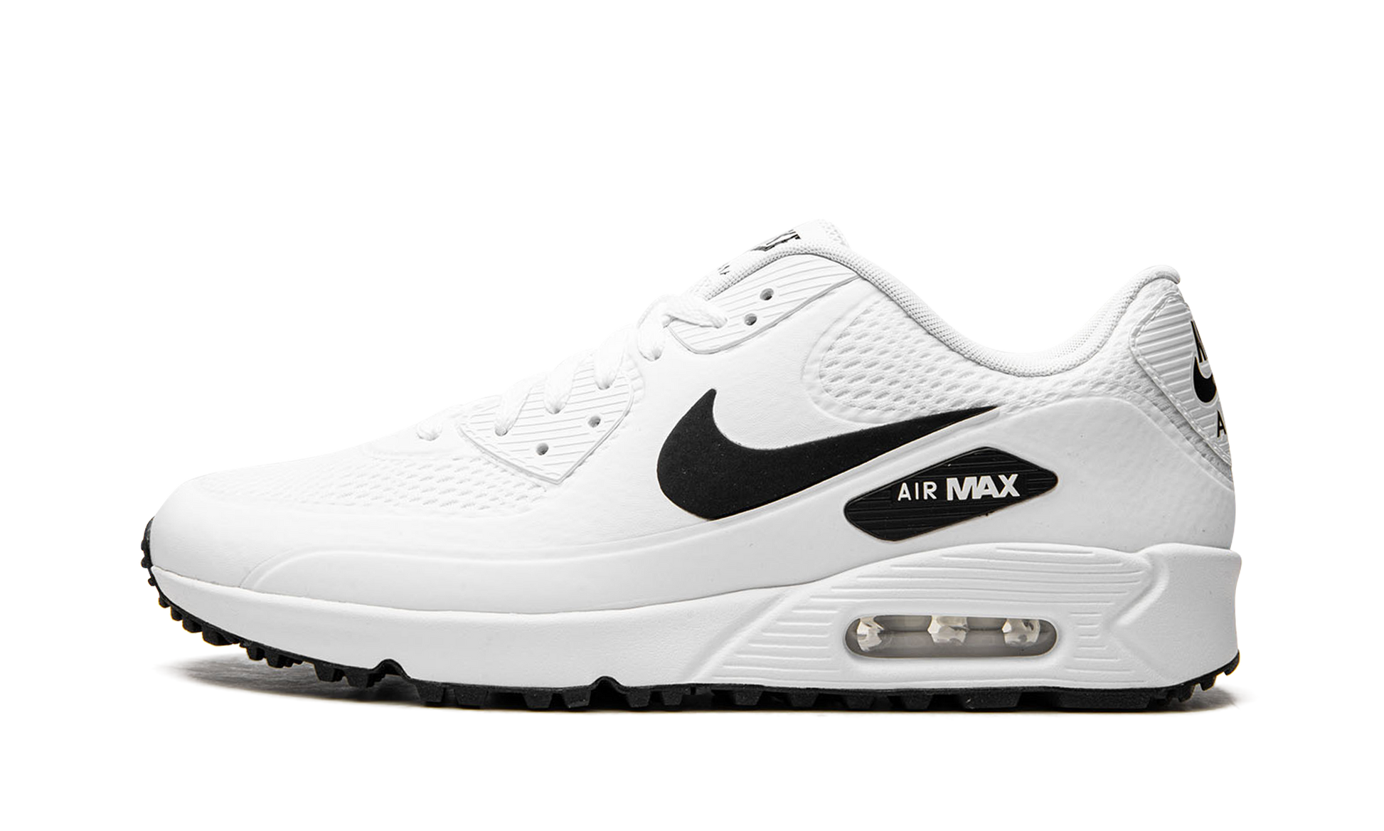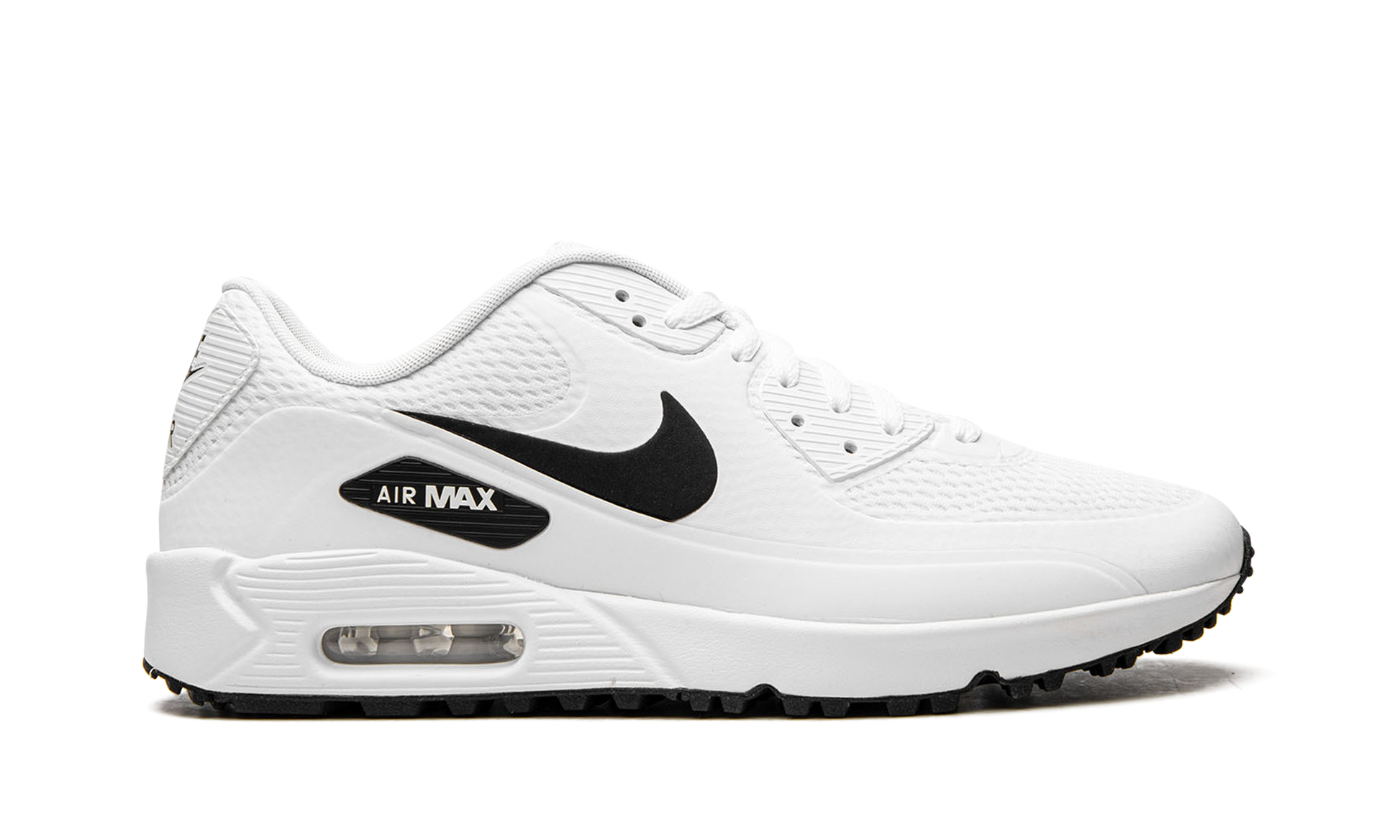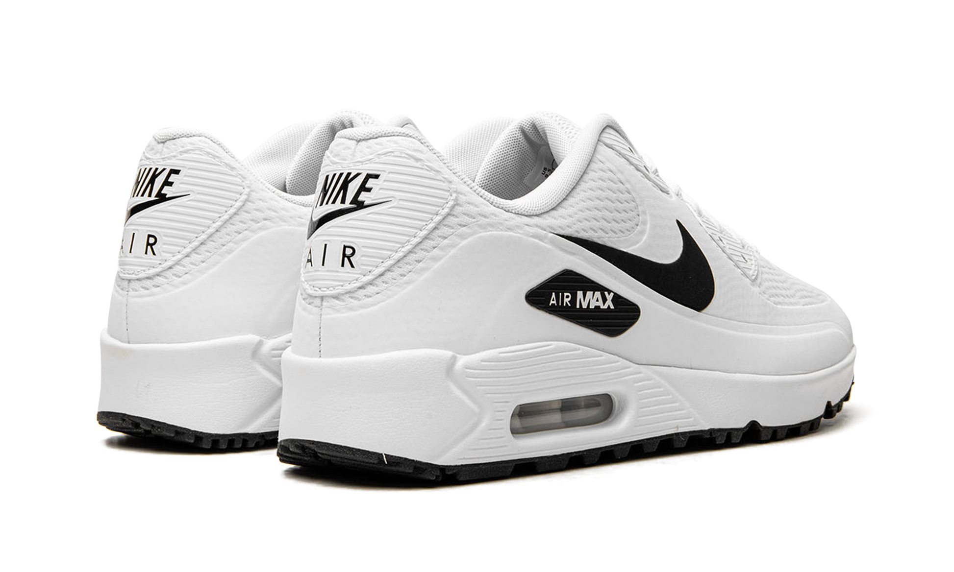 The Nike Air Max 90 Golf “White/Blackâ€?is a versatile colorway of the version of the retro running shoe redesigned for the fairway. The clean “White/Blackâ€?colorway of the alternate Air Max 90 Golf features a white mesh construction with tonal synthetic overlays throughout. A black Swoosh logo appears on both sides of the shoe. An “Air Maxâ€?branding overlay is found on the lateral side of the shoe. Small nubs on the outsole provide traction on a golf course.