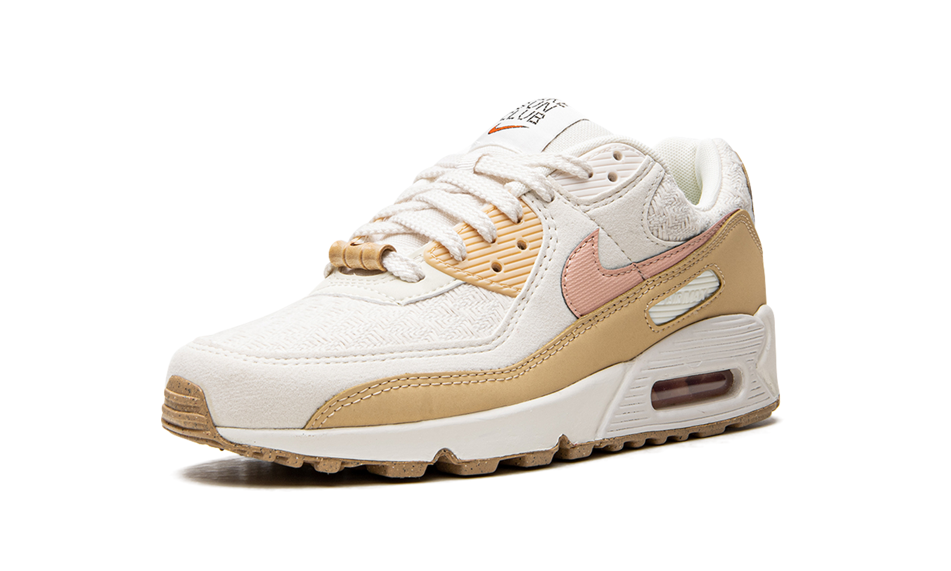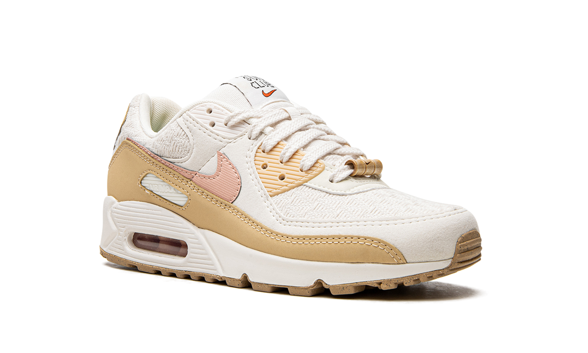 The Women's Nike Air Max 90 “Sun Clubâ€?is a women's release of the retro running shoe from the popular colorway collection. The “Sun Clubâ€?updates the Air Max 90's timeless design with warm tones and graphics. as it features palm tree detailing on the inner tongue tag. bamboo lace dubraes. and Nike's pinwheel graphic on the Grind outsole. The white textile base is complemented by tonal overlays and a pink Swoosh on either side. “Nike Airâ€?branding is found on the tan heel overlay. and “Nike Sun Clubâ€?insignia appears on the tongue tag. The sneaker is complete with a Nike Grind outsole that's made from recycled content. Release date: May 21. 2022