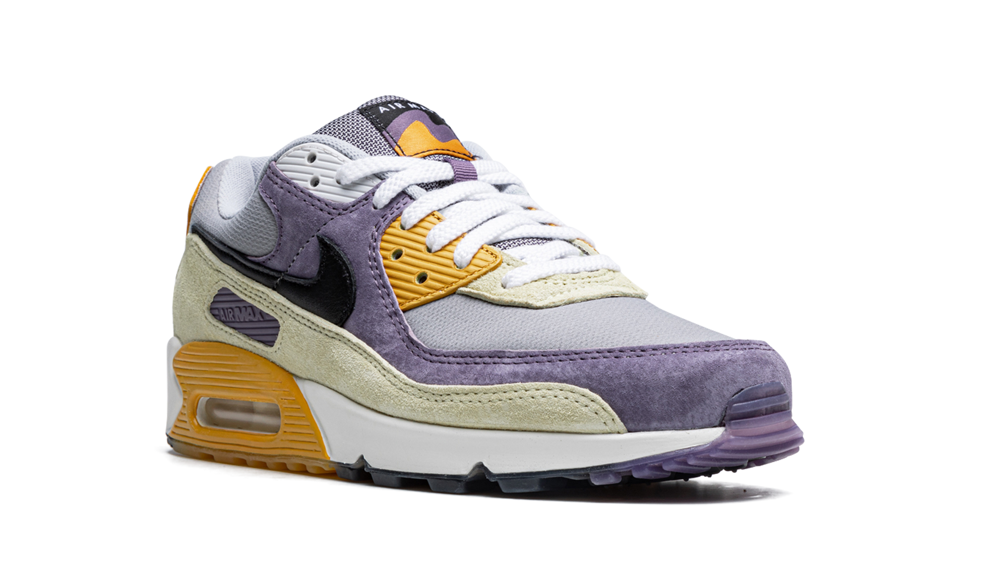 The Nike Air Max 90 “Lemon Dropâ€?is a colorway of the throwback performance running shoe that pays homage to the Nike ACG line of outdoors-inspired footwear. Sans any official “Nike ACGâ€?branding or the like. the “Lemon Dropâ€?is still inspired by the early '90s-era line. specifically by its use of bright colors. The shoe dons a light blue mesh base. The overlay panels are designed in Court Purple suede. Eye-catching Lemon Drop accents appear on the middle eyelet overlay and on the heel counter with “Nike Airâ€?branding. Additional Nike detailing is found on the tongue tag. The shoe's appearance is rounded into form with a white foam midsole featuring a visible Max Air unit in the heel. Release date: May 12. 2022