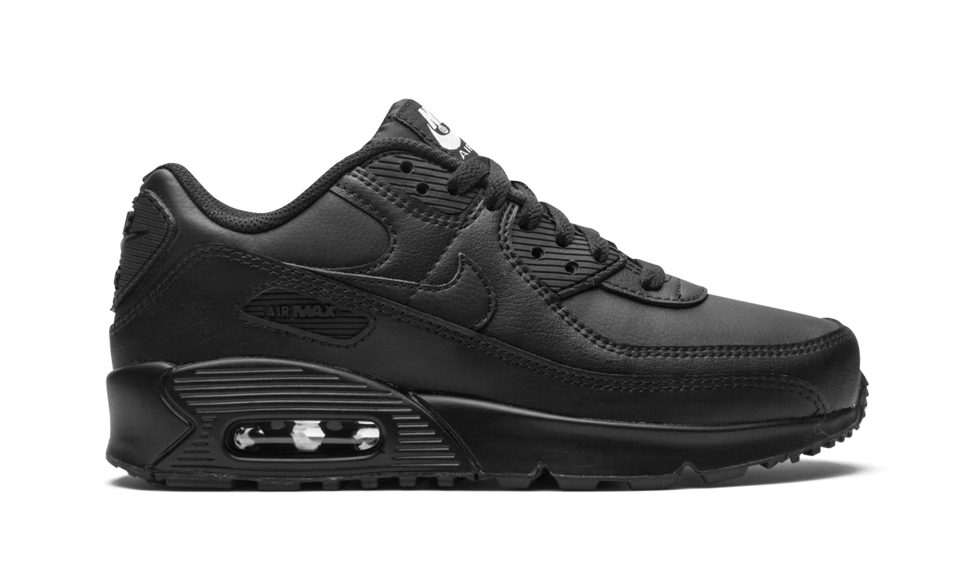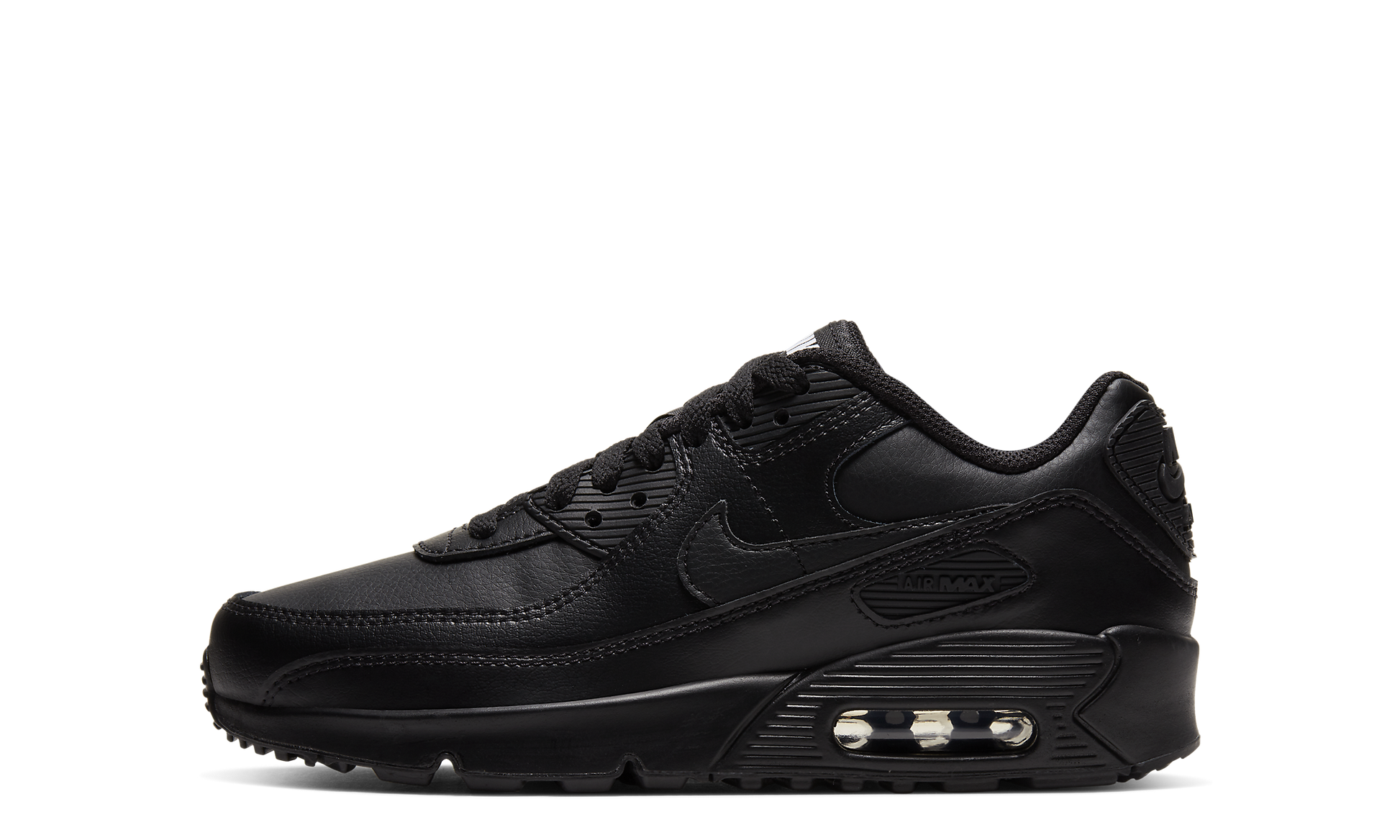 The Nike Air Max 90 "Triple Black" decks out the OG running style in an almost all-black color palette. The just-one-shade sneaker makes a monochromatic statement. while subtle detailing provides textural contrast. The Air Max 90 is framed with a full-grain leather TPU and rubber-like ribbed panels on the upper. and underneath. a tonal Air sole unit-cushioned midsole completes the all-black design. The only color you see on the Nike lifestyle sneaker is a white Nike Air Max logo coupled with a Swoosh on the tongue.