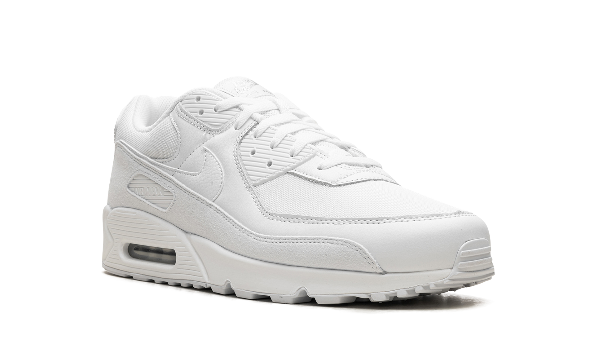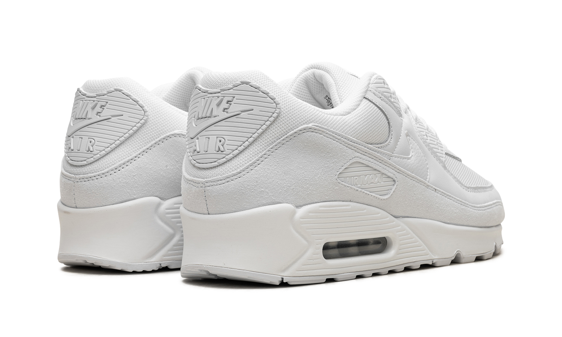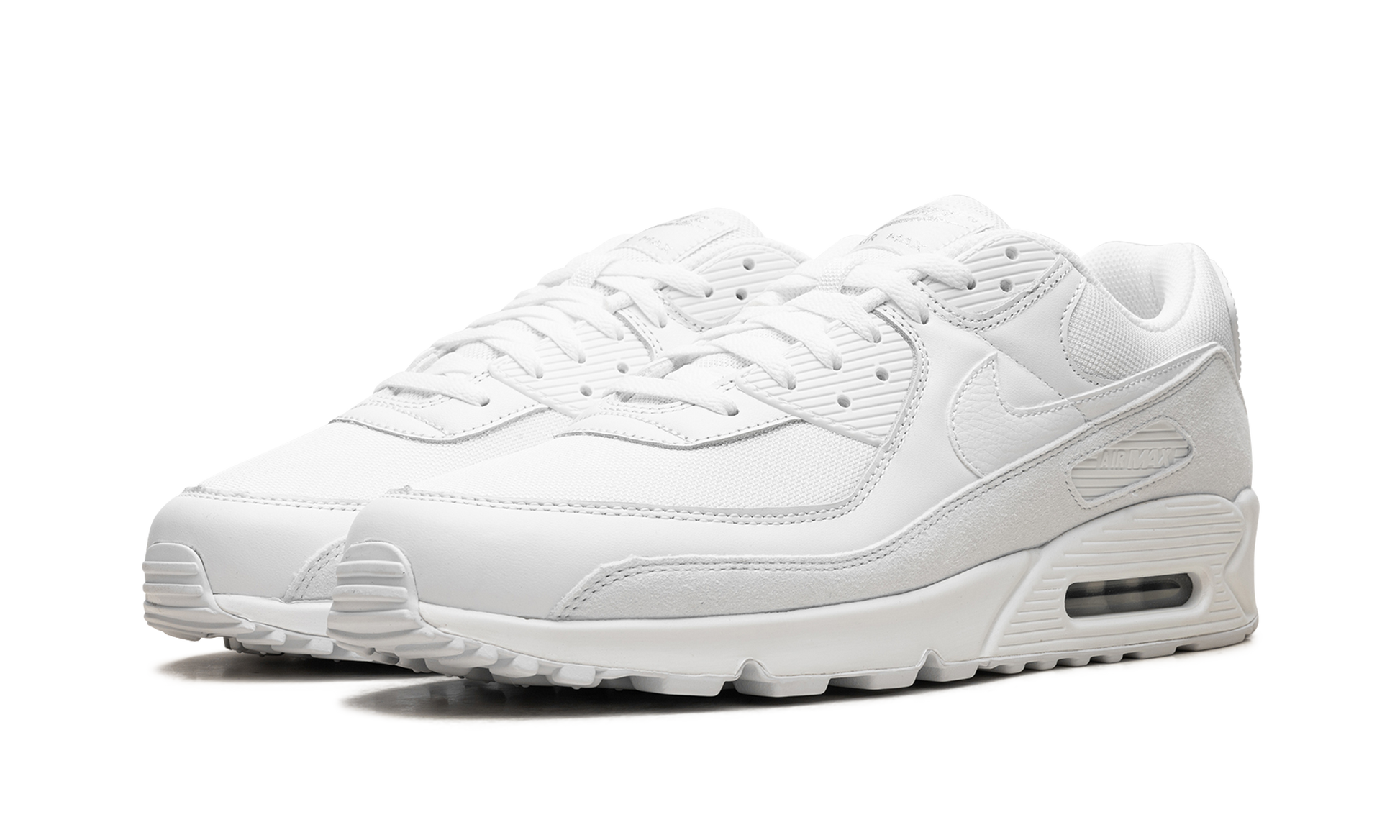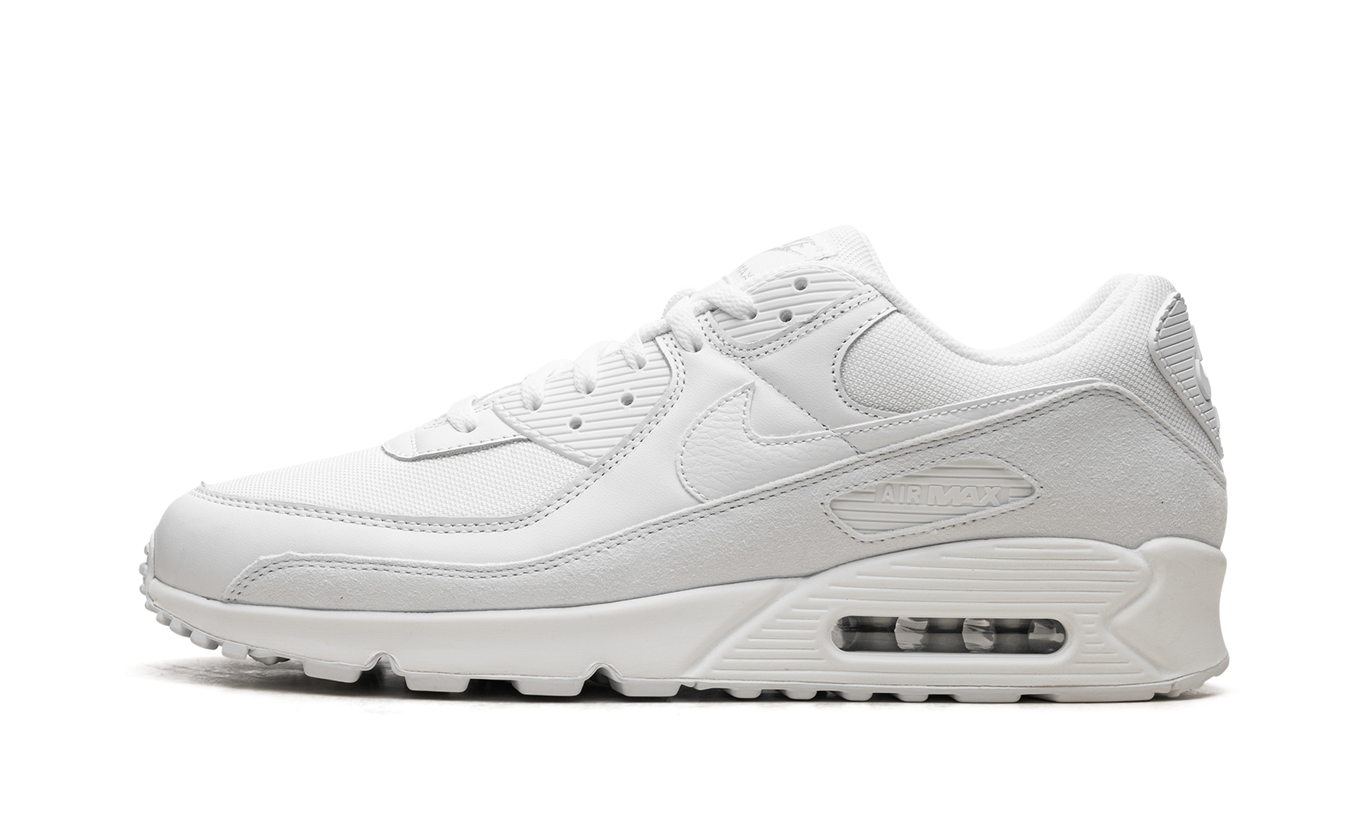 The Nike Air Max 90 “Triple Whiteâ€?is a monochromatic white colorway of the legendary running and lifestyle shoe. Both extremely versatile and timeless. the Air Max 90's “Triple Whiteâ€?colorway gives the vintage performance running shoe a neutral. all-white-everything makeover. The shoe is complete with an all-white leather construction with tonal leather overlays. A white leather Swoosh is found on both sides. A visible Air bubble in the heel of the white foam midsole rounds out the look. Release date: April 1. 2023