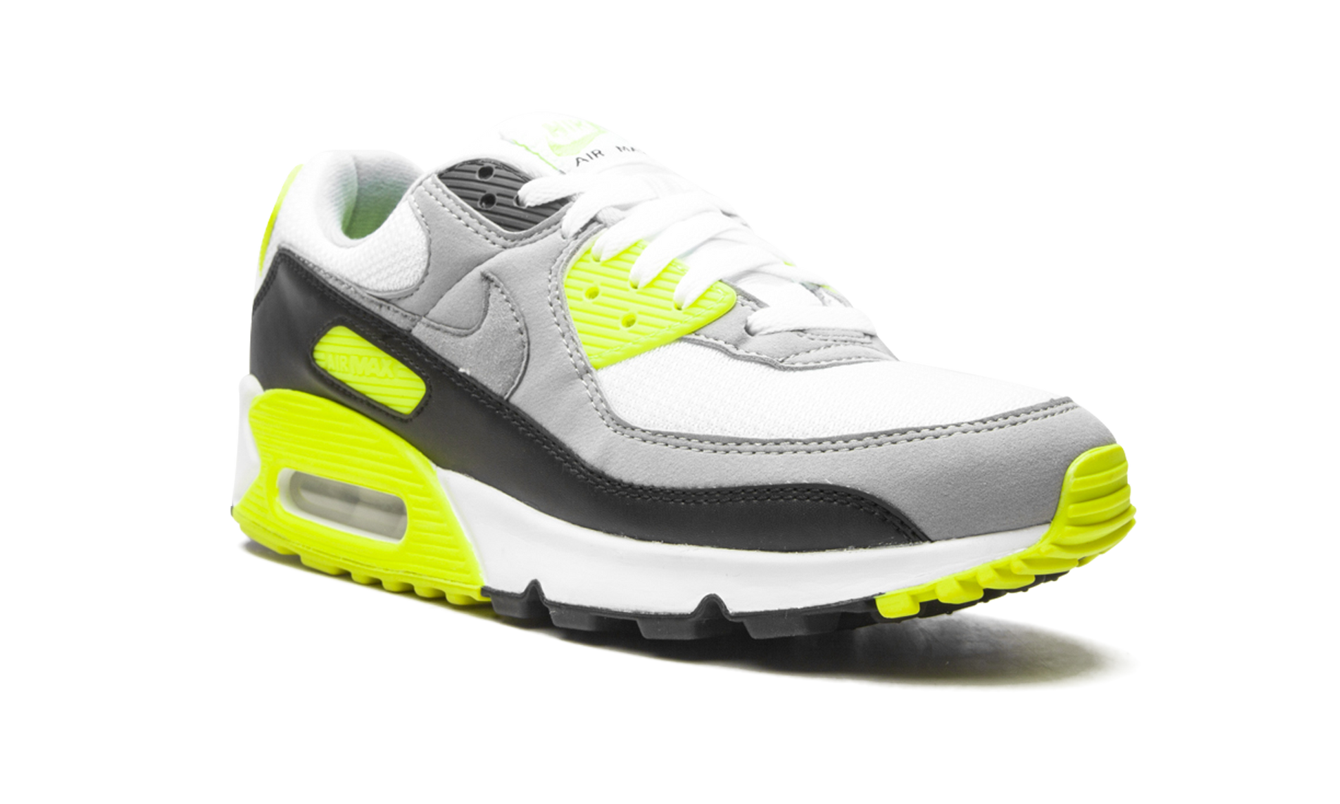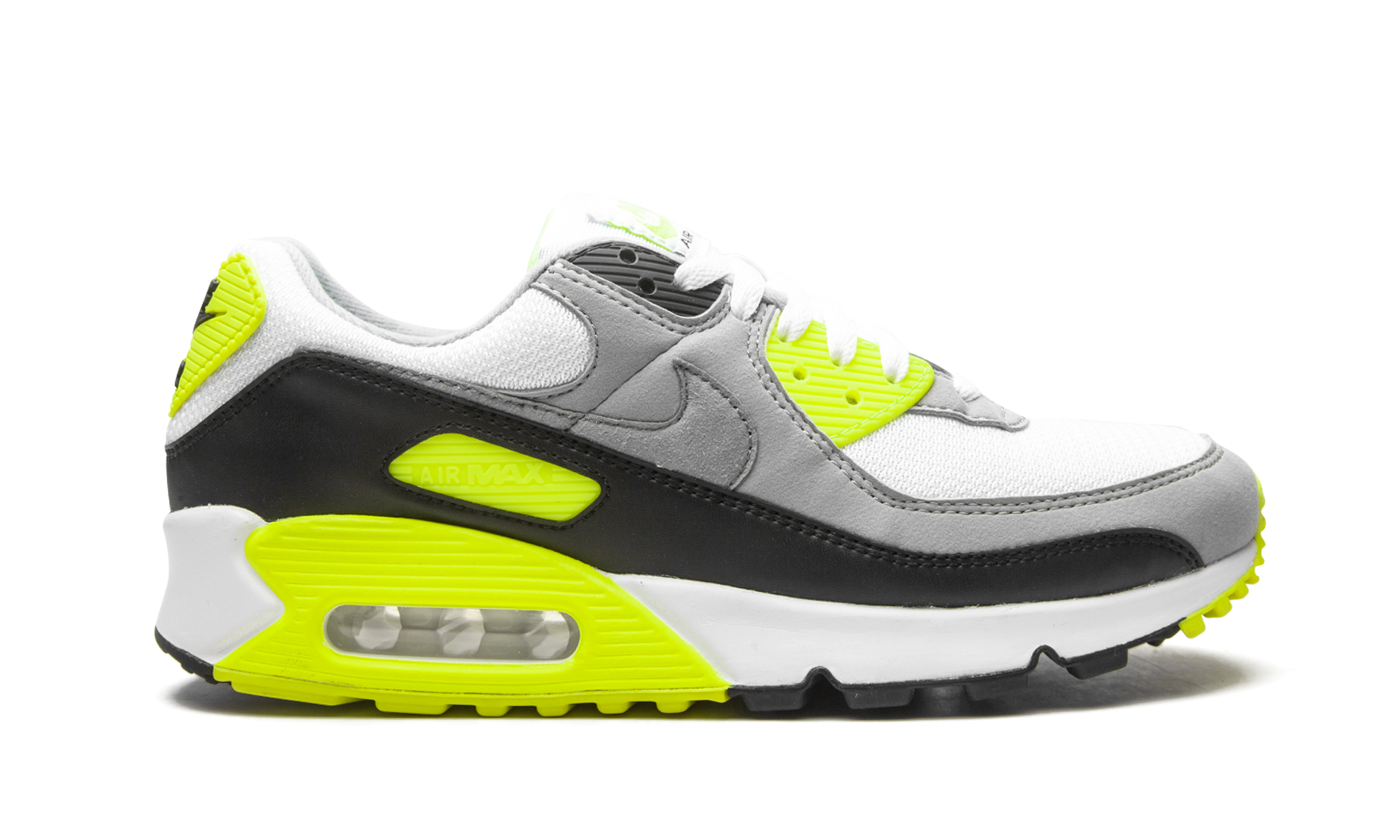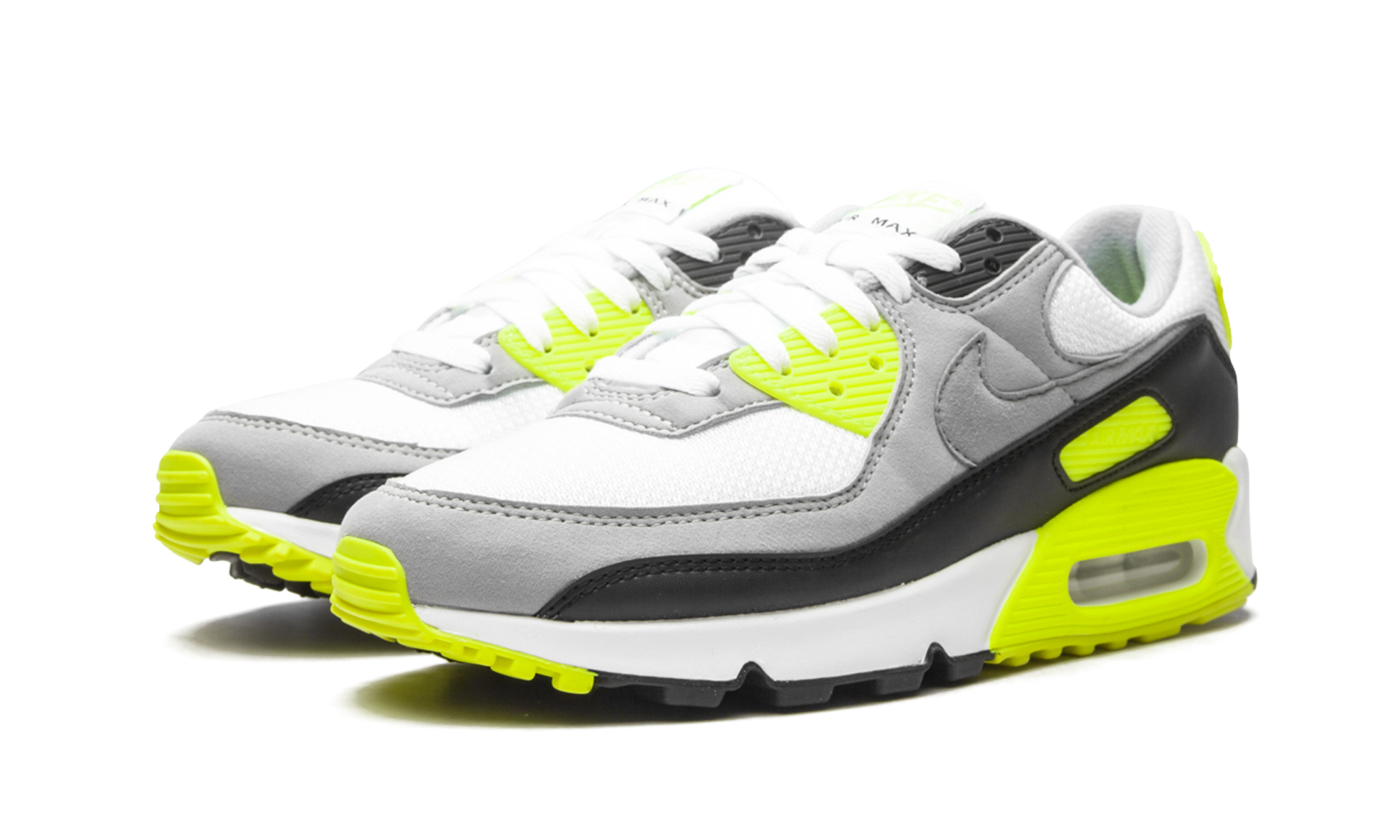The Nike Air Max 90 “Voltâ€?celebrates the thirtieth anniversary of the legendary running shoe. The model returns with a true-to-original "Recraft" construction that features a more streamlined shape and premium materials. In an OG-inspired color block. Nike applies a vivid hue of Volt accenting on the eyelets. Air Max branding window. heel tab and panel that surrounds the visible Air unit in the heel. A black nubuck mudguard is contrasted by light grey leather accenting on the mid-panel and toe cap. The Nike Air Max 90 Recraft “Voltâ€?was released on January 16. 2020.