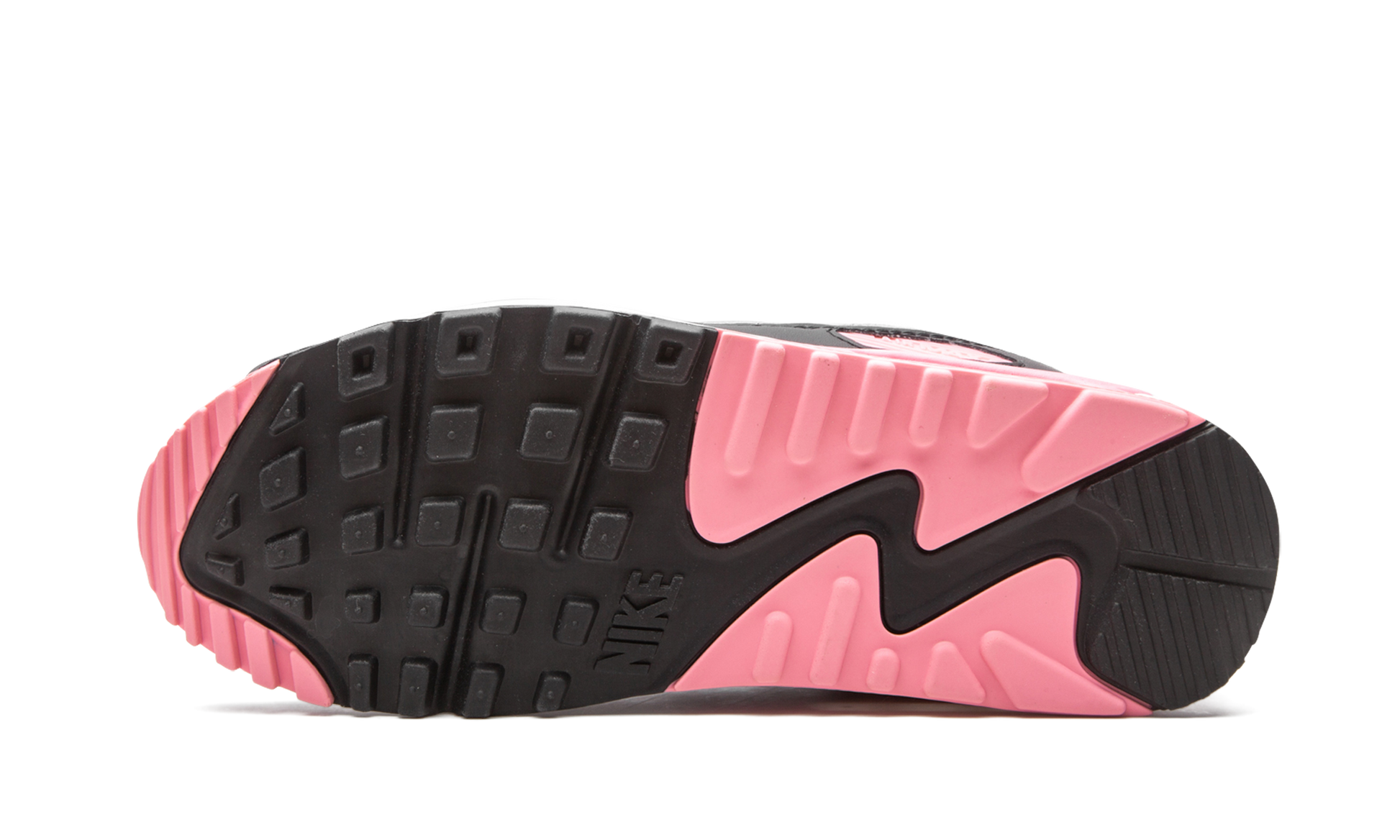 The Women's Nike Air Max 90 "Rose" is everything a woman wants in a sneaker: the comfort and coolness of the Air Max silhouette coupled with a versatile colorway. The iconic Air Max 90 rubber midsole features a combination of white. grey. black. while the design is elevated by rosy pink shades on the rubber elements located at the eyestays. midfoot. and heel. The sneaker also features the same color scheme on the midsole panel around Nike's signature Air Max bubble. as well as the midsole. and rubber traction outsole.