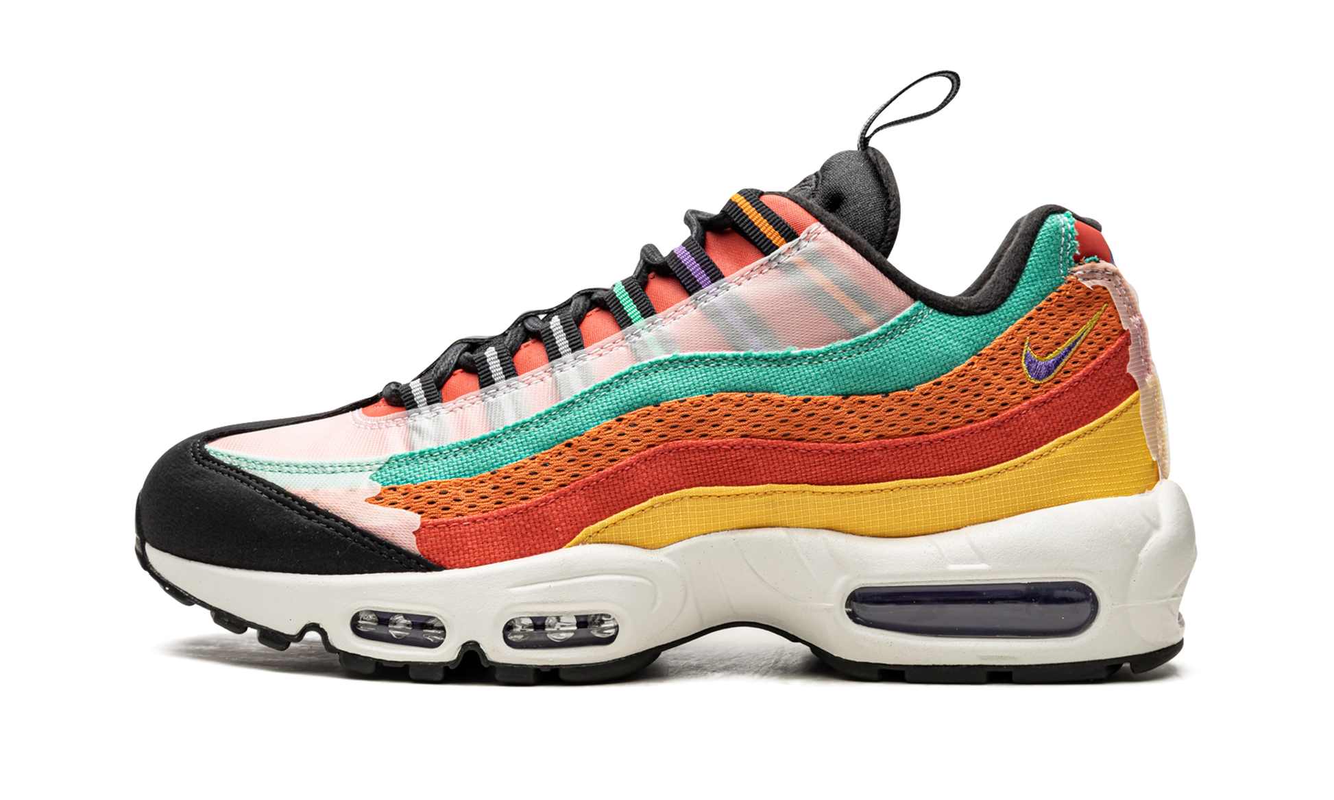 The Nike Air Max 95 “Black History Month 2020â€?is a special colorway of the classic sneaker in observance of Black History Month 2020. Inspired by traditional African textiles and the vibrancy of '90s street culture. the upper features a multicolor design with mismatching overlays in materials such as synthetic. canvas. and mesh. A semi-translucent pattern can be found as a base around the eyelets. which range in color and mimics traditional ceremonial attire. “BMHâ€?branding is debossed onto the tongue and printed on the insole while a white midsole with visible Air units in both the heel and forefoot. The Nike Air Max 95 “Black History Month 2020â€?was released on February 19. 2020.