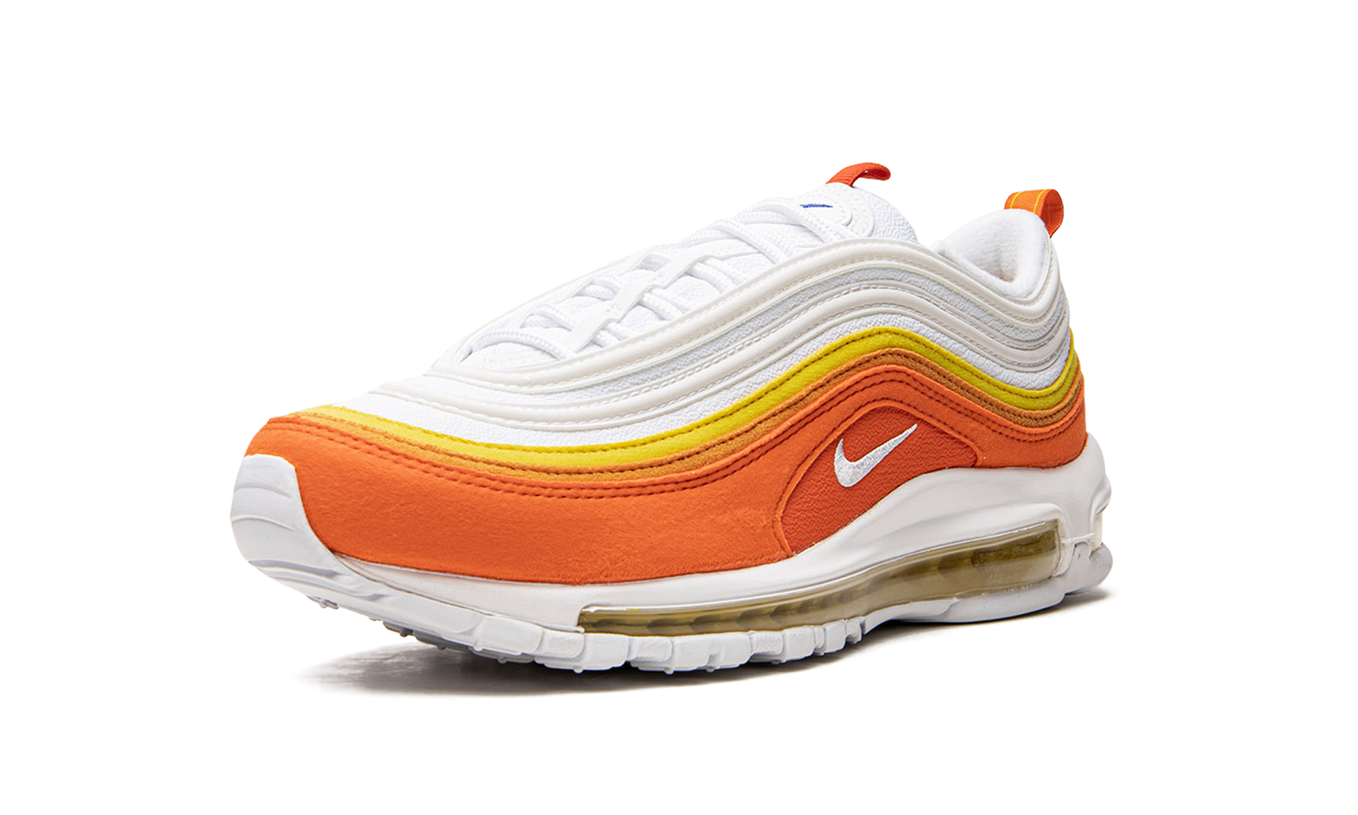 The Nike Air Max 97 “Athletic Clubâ€?is another eye-pleasing colorway of the retro running shoe that was released as part of Nike's “Athletic Clubâ€?collection in 2022. Spanning several popular Nike models including the Air Force 1. Air Max 90. and more. the Air Max 97's “Running Clubâ€?colorway features a white mesh base with tonal leather overlays. Yellow-to-orange leather overlays in a wavy pattern wrap around the shoe. A fiery orange leather mudguard adds even more color to the design. A white Swoosh is embroidered on either side. Underfoot. the visible full-length Max Air cushioned midsole completes the look. Release date: March 1. 2022