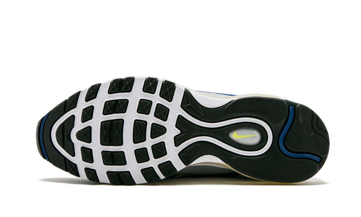 The Nike Air Max 97 “Atlantic Blueâ€?is an original colorway of the iconic Air Max runner from 1997. Often overshadowed by other colorways. the “Atlantic Blueâ€?Air Max 97 remains a cult favorite that is prized by loyal fans. The style made a comeback in 2017 during the model's 20th anniversary. The Nike Air Max 97 “Atlantic Blueâ€?features the signature wavy lines of the upper in an alternating pattern of blue synthetic nubuck and silver mesh. There are vibrant hits of Voltage Yellow for the branding and visible Air.