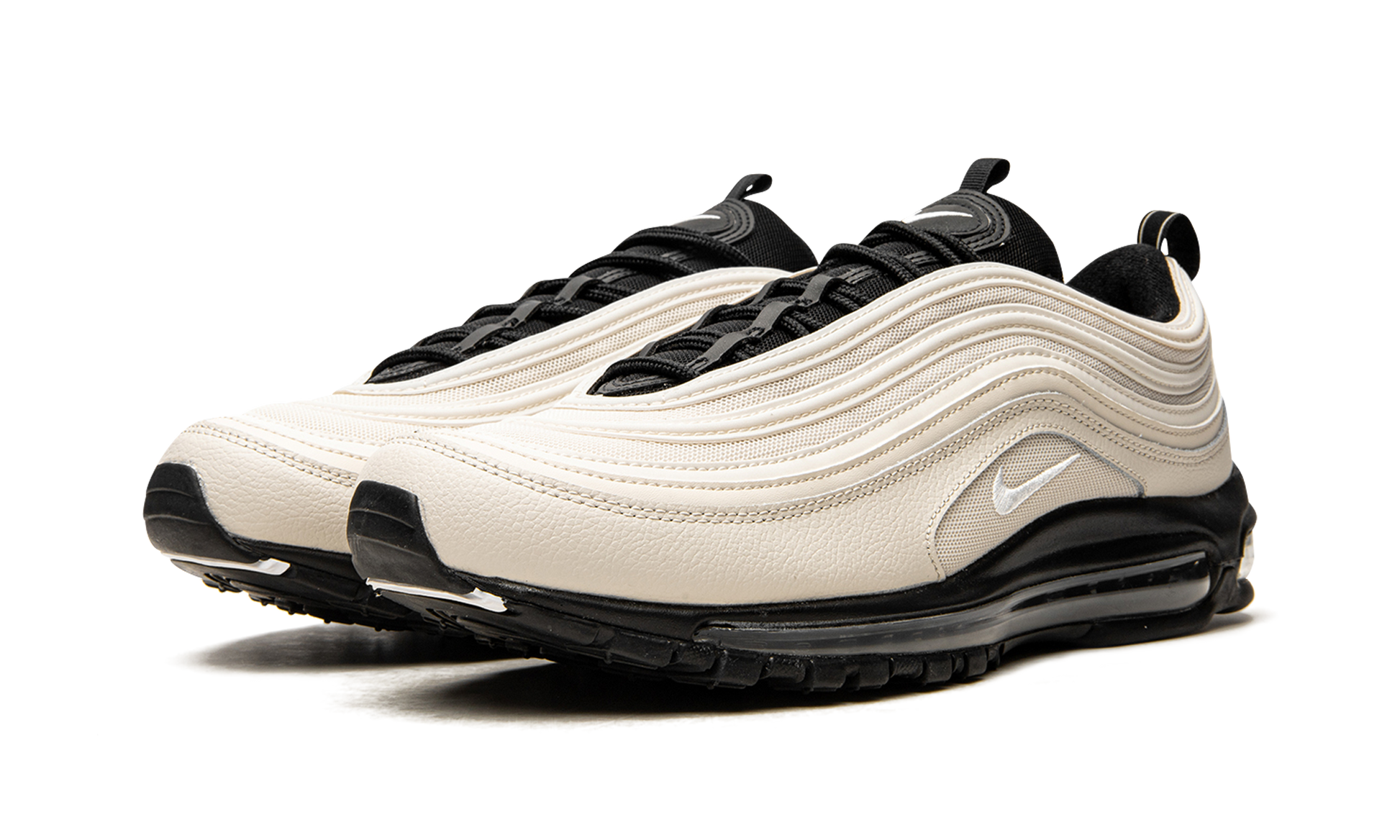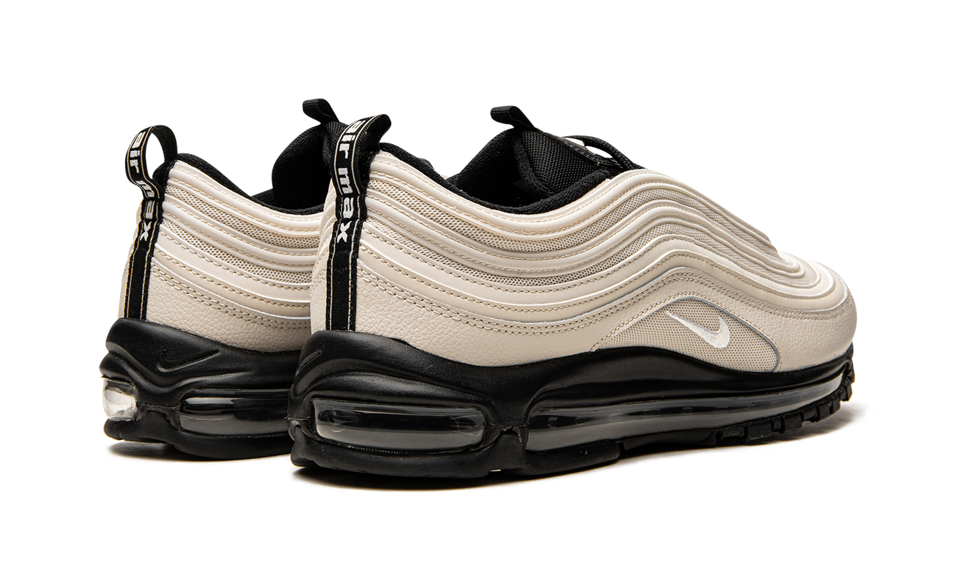 Beige leather Air Max 97 "Light Bone" sneakers from NIKE featuring embroidered logo to the side. round toe. front lace-up fastening. logo patch at the tongue. double pull-tab at the opening. branded insole and rubber sole with Max Air cushioning. These styles are supplied by a premium sneaker marketplace. Stocking only the most sought-after footwear. they source and curate some of the most hard to find sneakers from around the world..