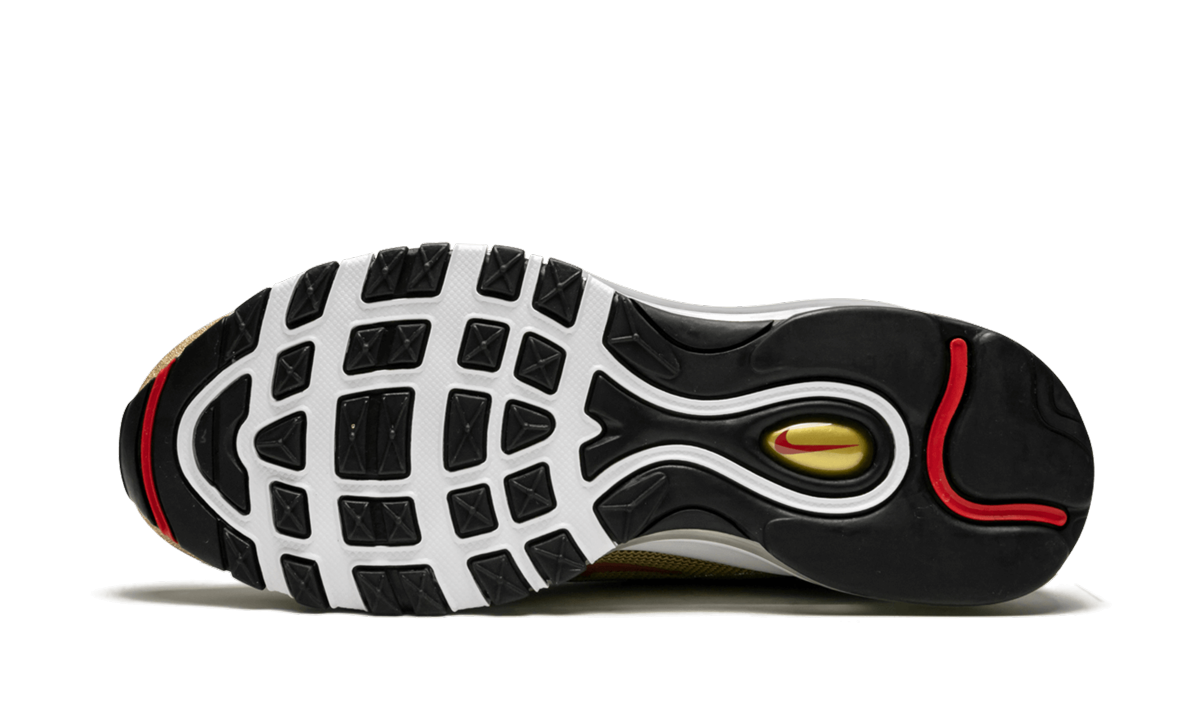 Upping the ante on the already iconic colorway of the already iconic silhouette. the Air Max 97 Swarovski features Swarovski's proprietary Crystal Fabric. The flexible fabric in the overlays includes thousands of tiny crystals bunched together to achieve a shimmering effect as the shoe moves. The aura of opulence is extended with a gold upper and red accents on the tongue and midfoot. This is a one-of-a-kind model for a one-of-a-kind collaboration.