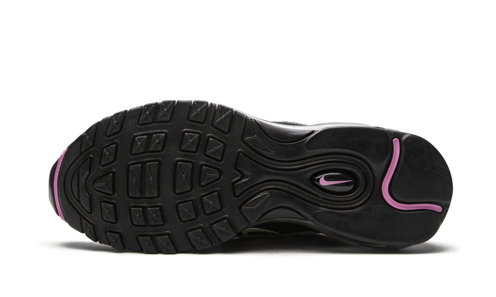 The Women's Nike Air Max 97 “Splatterâ€?is a women's edition of the retro running shoe featuring an eye-catching graphic print. On this “Splatterâ€?colorway. wavy pink leather panels contrast the black mesh base. The aforementioned splatter motif is printed on the mudguard above the black painted midsole. A mint green Swoosh appears on both sides. Additional pink leather piping is located on the top of the black mesh tongue. A full-length visible Air unit in the midsole cuts a decidedly retro look. Release date: Summer 2020.