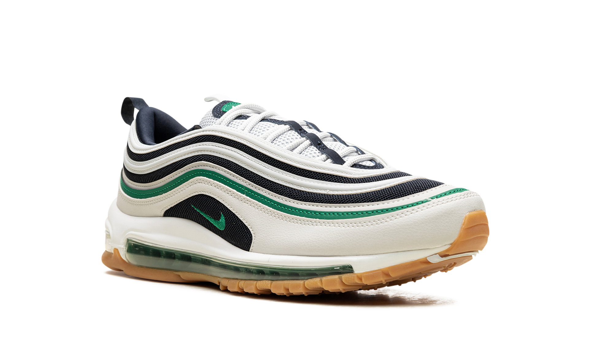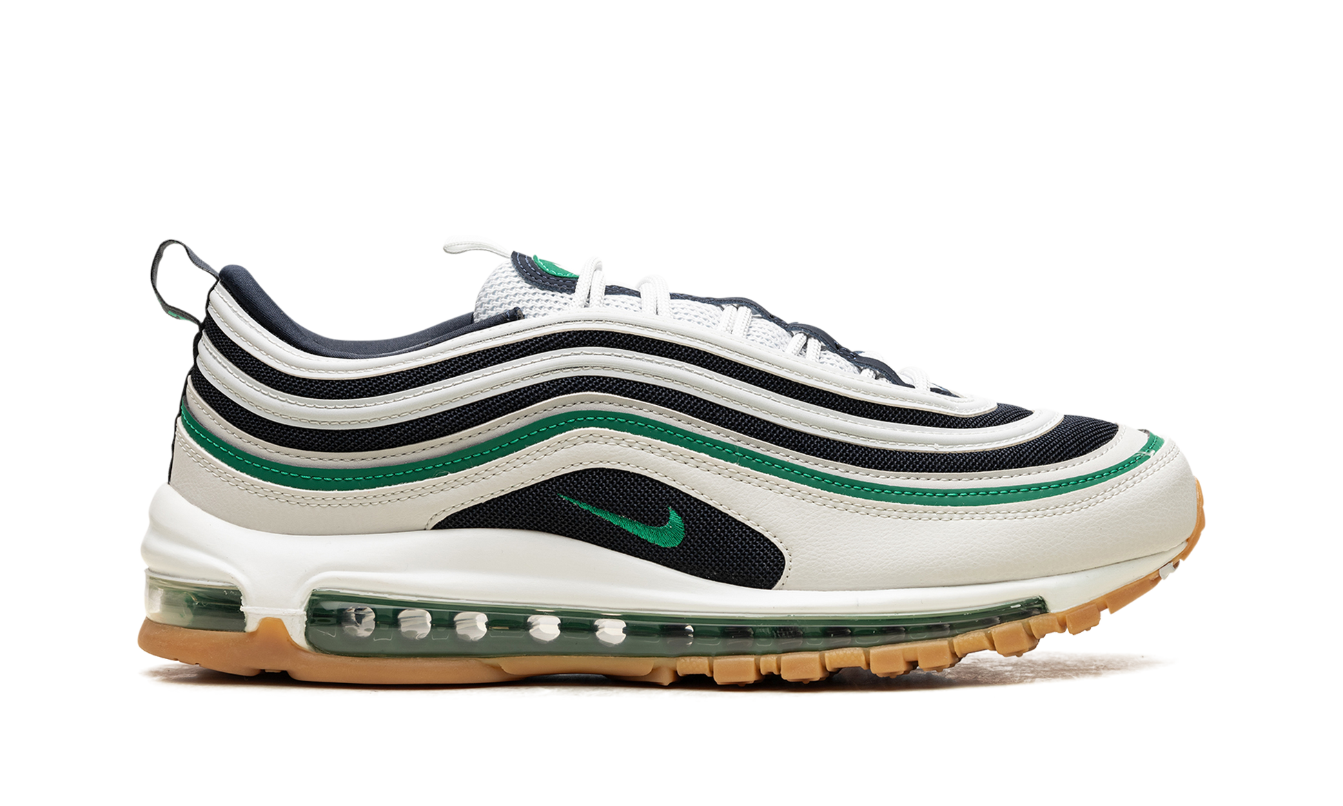 The Nike Air Max 97 Photon Dust Malachite combines a striking color palette with an age-old design. This model. known for its elegant profile and advanced comfort. showcases its distinct look and feel. which appeals to a wide audience.