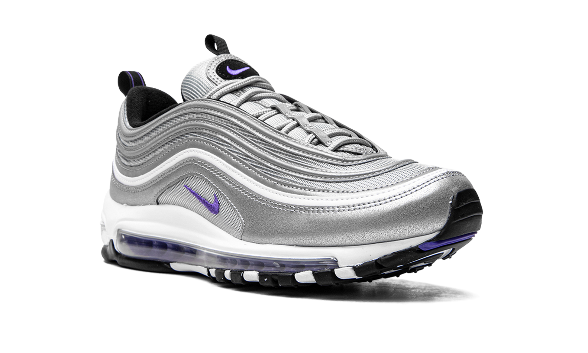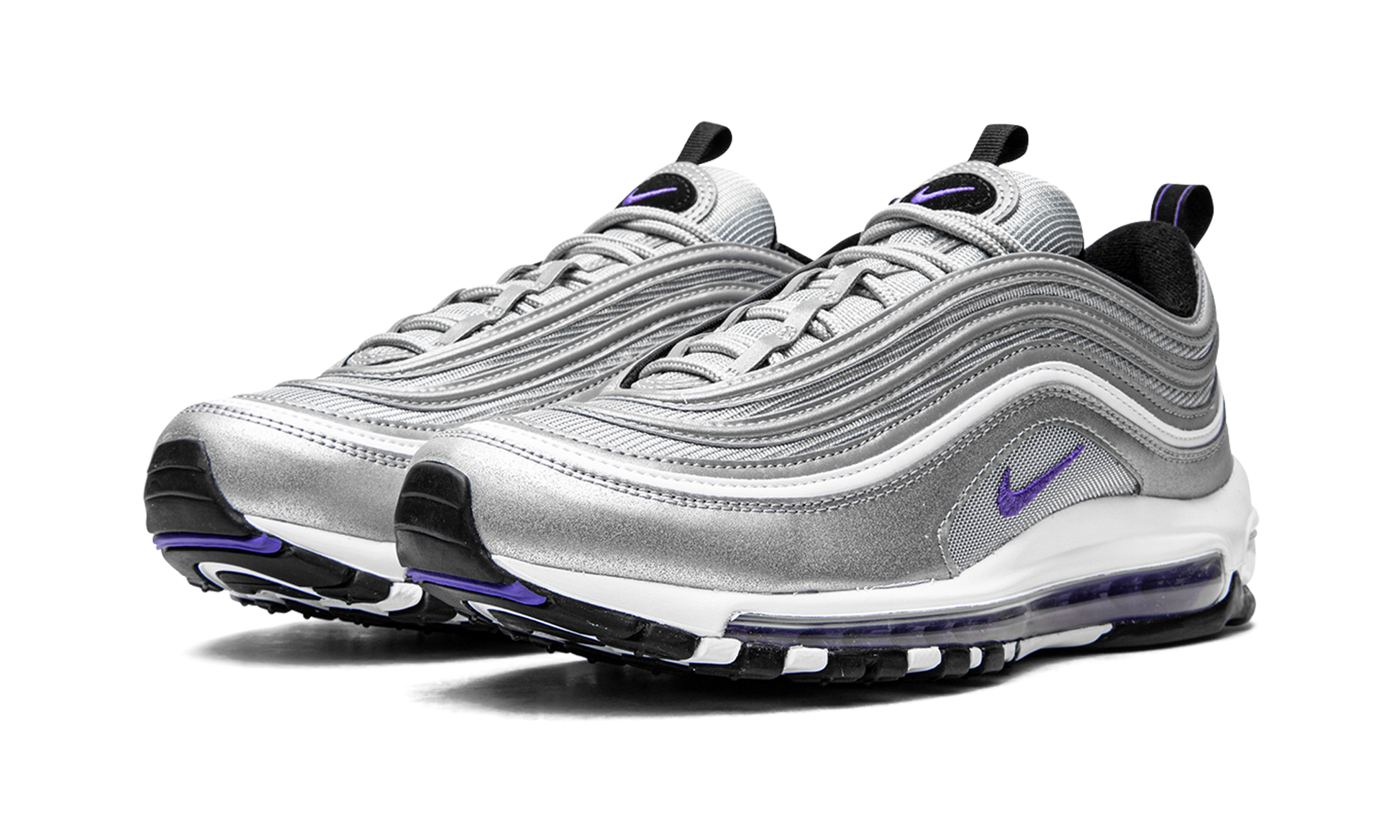The Women's Nike Air Max 97 “Purple Bulletâ€?is a women's-exclusive colorway of the retro performance running shoe by Nike that references the model's original. and always-popular. “Silver Bulletâ€?style. A near one-to-one of the “Silver Bulletâ€?that was originally released in 1997. the “Purple Bulletâ€?is designed in the same monochromatic silver design as the first iteration. save for a few modifications. Metallic Silver leather panels appear on the upper. The base is designed in Metallic Silver mesh. An embroidered Violet Swoosh is found above the white foam midsole on either side of the shoe and on the black circular overlay on the silver mesh tongue. A full-length. heel-to-toe visible Max Air unit in the midsole cuts a vintage look and provides all-day comfort. Release date: October 21. 2021