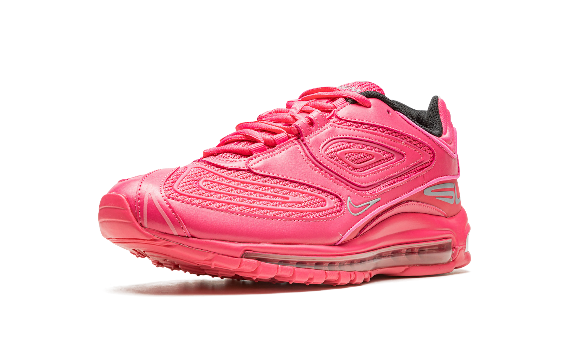 The Supreme x Nike Air Max 98 TL “Pinkâ€?is one of four colorways of the retro running shoe by the “World Famousâ€?clothing brand. Supreme's seasonal collaboration with Nike continued in 2022 with the streetwear brand tapping the somewhat obscure Air Max 98 TL for a special collection of colorways. On the “Pinkâ€?colorway. the shoe is treated to a head-turning monochromatic pink makeover. The sneaker is complete with a pink mesh base with tonal leather and TPU overlays. The Swoosh logo found on the lateral side is treated with a reflective finish that shines when exposed to light in the dark. Additional reflective detailing can be found on the “Supremeâ€?branding on the heel and on the laces. A full-length visible Air cushioning unit appears in the midsole and completes the look. Release date: November 3. 2022