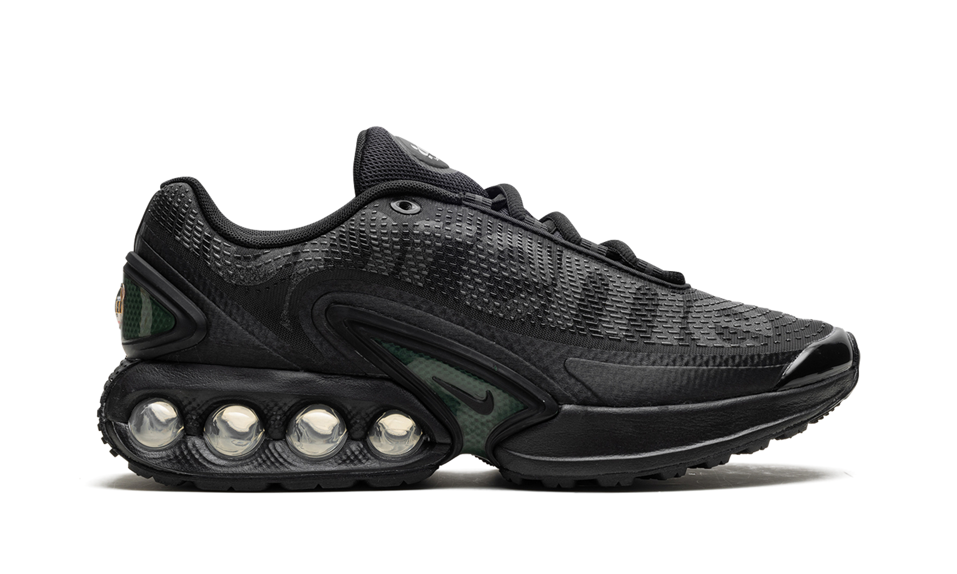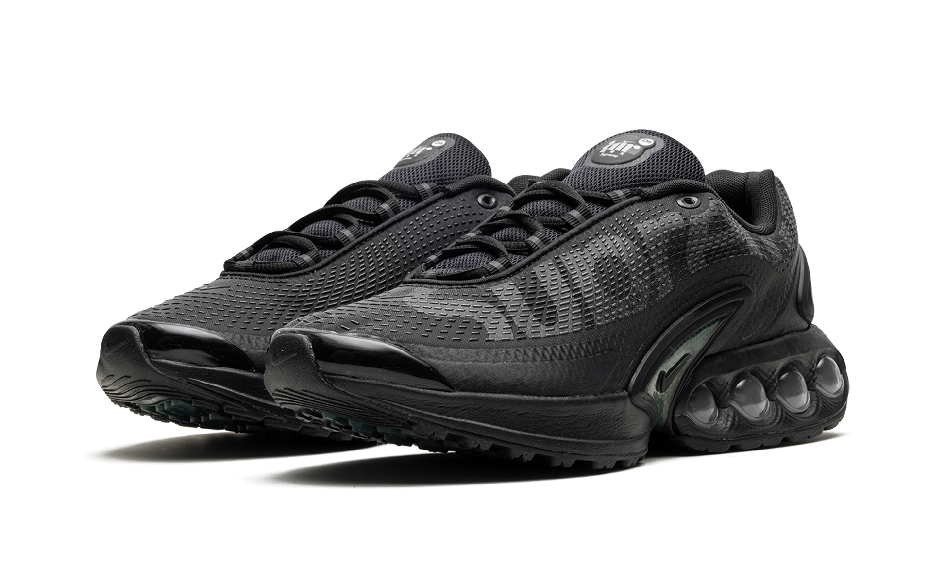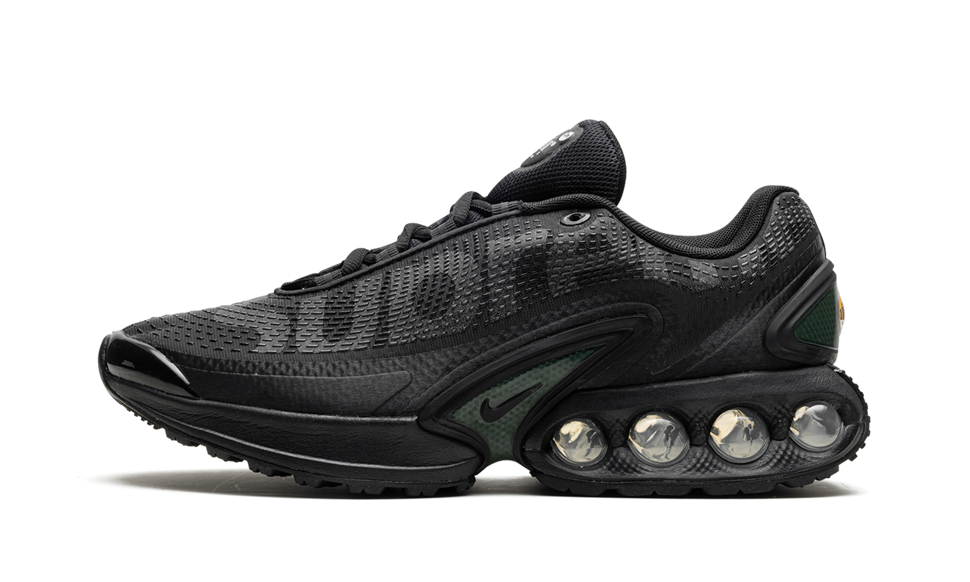 The Supreme x Nike Air Max Dn "Black" is a collaboration between Supreme and Nike on the lifestyle shoe that debuted in 2024. The Air Max Dn was introduced by Nike as part of its celebration for its annual Air Max Day in March 2024. It was also included in the high-profile collaboration with Supreme for the brand's Spring/Summer 2024 collection. As far as the design of the shoe at hand. it features a seamless black mesh construction with tonal no-sew overlays. “Supremeâ€?branding is printed on the lateral side in reflective lettering. while a co-branded logo can be found on the tongue and heel. Underfoot. a green-tinted TPU shank plate can be seen in the midsole. while exposed dual-pressure “tubesâ€?filled with Nike's Dynamic Air cushioning technology appear in the heel with “Supremeâ€?branding printed on the lateral side. Release date: February 22. 2024