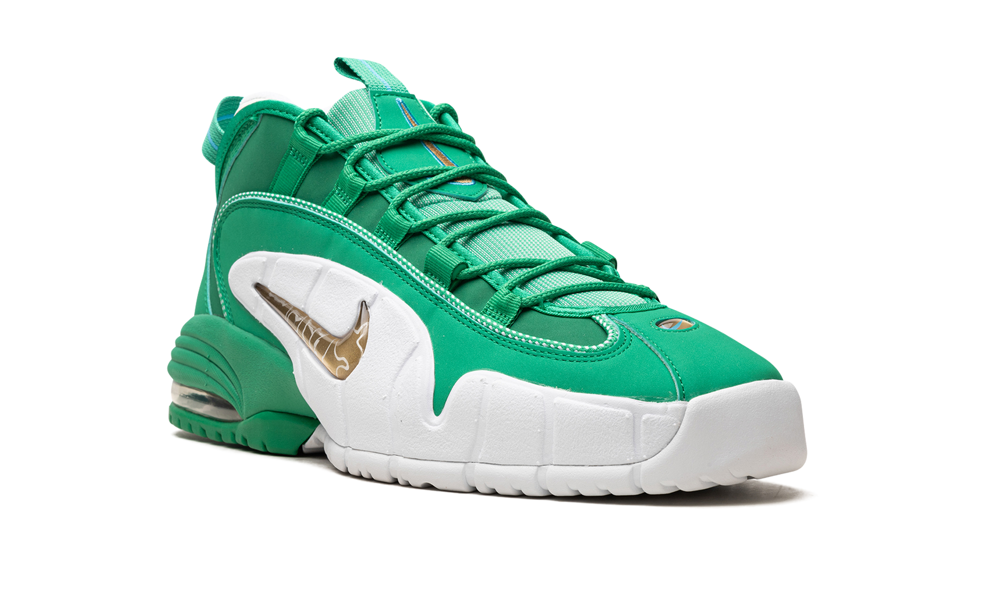 The Nike Air Max Penny 1 "Stadium Green" is a colorway of Anfernee “Pennyâ€?Hardaway's first signature shoe with an eye-catching green design. A classic performance basketball sho. the Air Max Penny 1 was worn by Penny with the Orlando Magic during the 1995-96 NBA season. The “Stadium Greenâ€?colorway of the shoe features a green synthetic nubuck base with white detailing on the lateral side “wingâ€?foam panels. Penny's signature â€?-Centâ€?branding is found on the heel. and Metallic Gold jewel Swooshes lay within the lateral side wings. A visible Air Max unit appears in the heel of the midsole to complete the celebrated sneaker. Release date: November 13. 2023