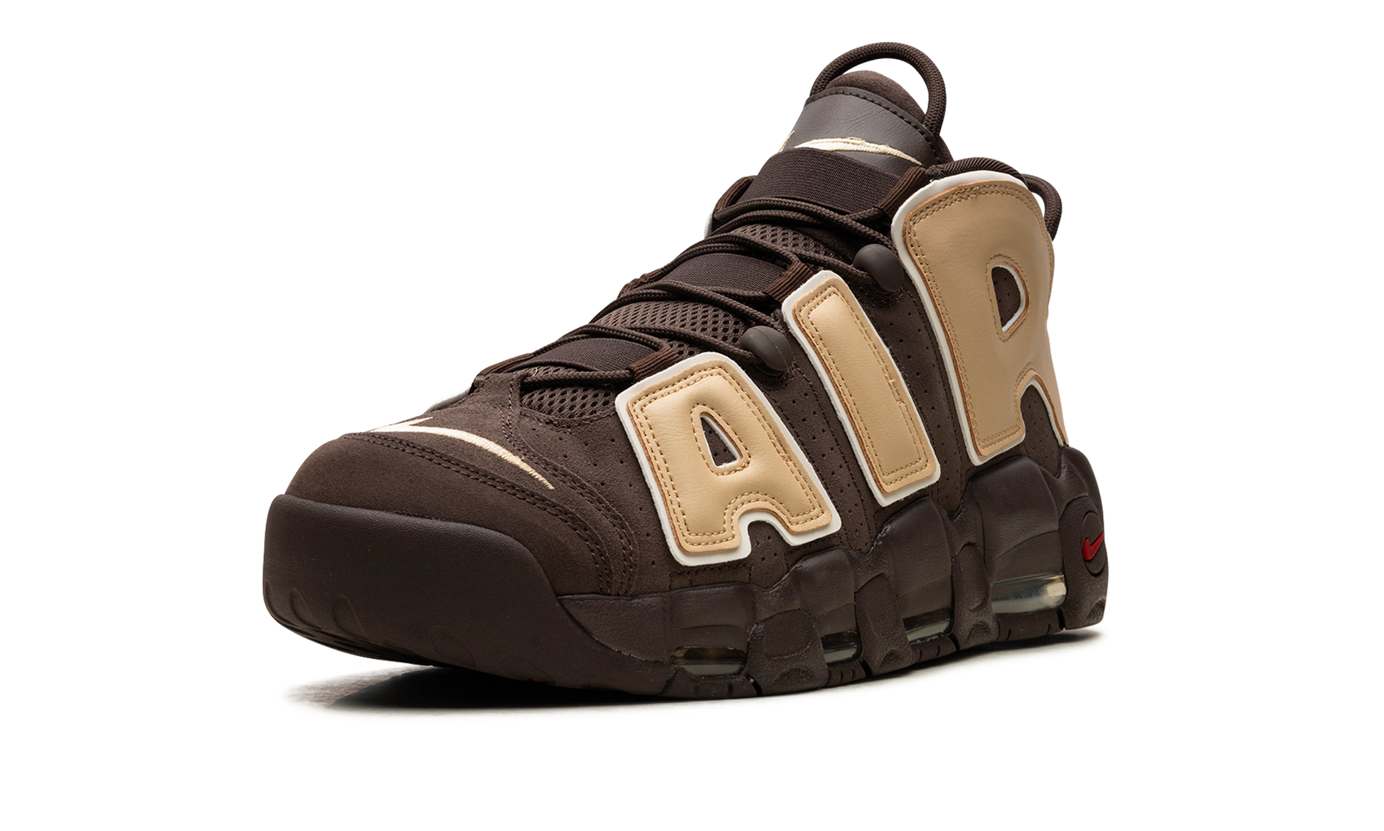 The Nike Air More Uptempo "Baroque Brown" is an earth tone colorway of Scottie Pippen's classic signature sneaker. Debuted in 1996. the Air More Uptempo was memorably worn by Pippen with the Chicago Bulls during the team's then-NBA record 72-win regular season in 1995-96. Here. the unique look for the classic models in “Baroque Brownâ€?features a brown suede construction with Sesame-colored. oversized. graffiti-inspired “AIRâ€?branding on either side. A white Swoosh is embroidered on the toe and Sesame jeweled Swoosh is found on the heel. Underfoot. visible Air units in the forefoot and heel of the brown midsole complete the design. Release date: September 29. 2023
