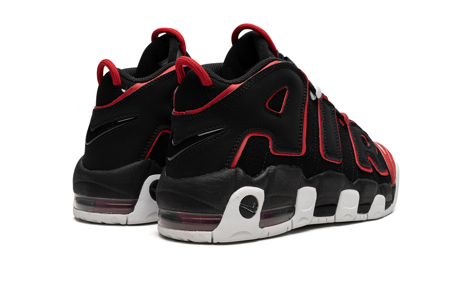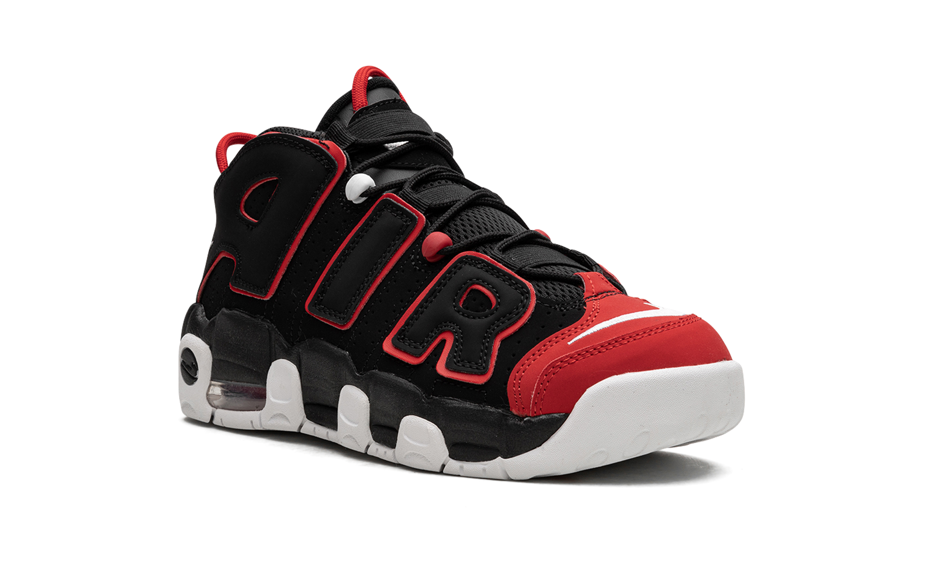 The Nike Air More Uptempo GS “Red Toeâ€?is the youth sizing of the retro basketball shoe in a colorway loosely inspired by the Chicago Bulls. Dubbed the “Red Toe.â€?this style of the Air More Uptempo features a black. white. and red color scheme that unofficially salutes the Bulls. The shoe features a University Red-colored leather toe cap paired with a black synthetic nubuck upper. Tonal “AIRâ€?branding with red trim appears on the sides. An oversized white Swoosh is embroidered on the toe and a black jeweled Swoosh is found on the heel. Red-tinted visible Air bubbles in the midsole complete the look. Release date: September 28. 2022